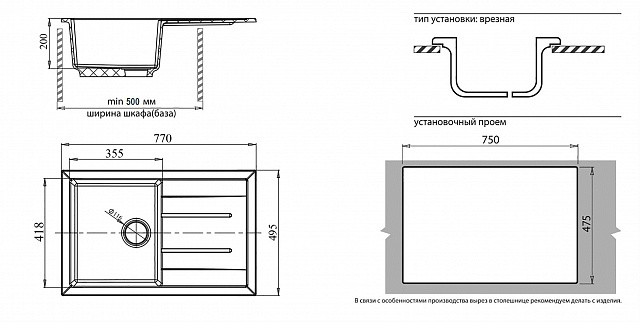 Кухонная мойка GranFest QUADRO 780L бежевый