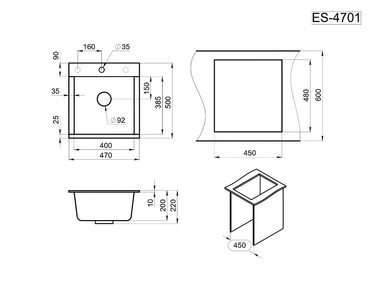 ТОЛЬКО ПОД ЗАКАЗ! Кухонная мойка ESTETICA ES-4701, кварц.