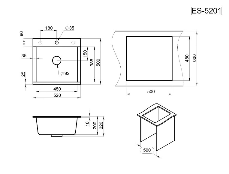 ТОЛЬКО ПОД ЗАКАЗ! Кухонная мойка ESTETICA ES-5201, кварц
