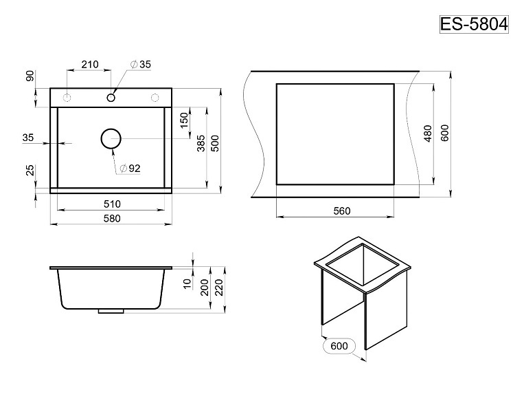 ТОЛЬКО ПОД ЗАКАЗ! Кухонная мойка ESTETICA ES-5804, кварц