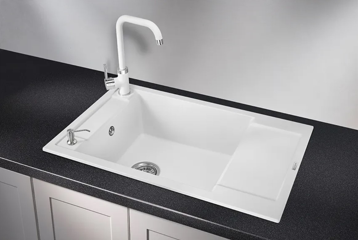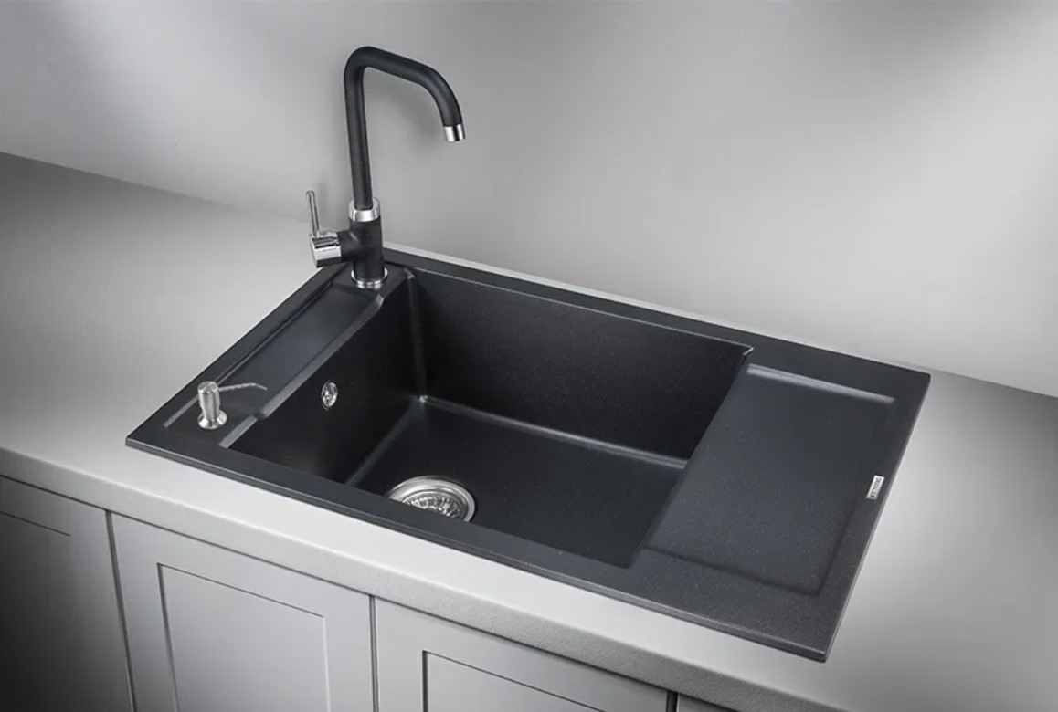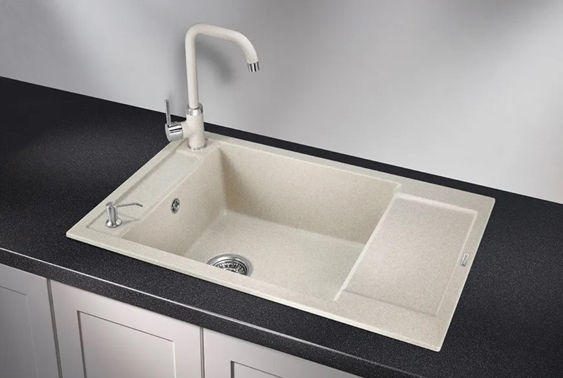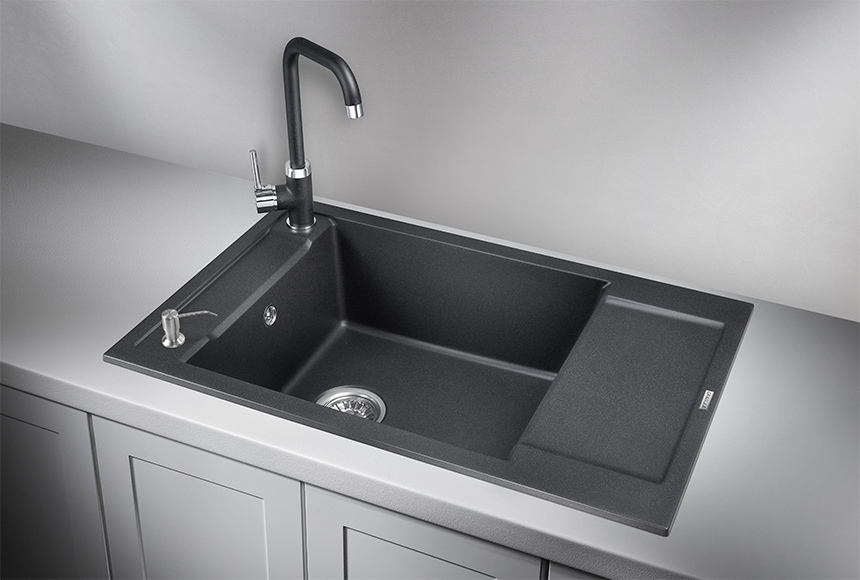 Мойка с оригинальным дизайнерским решением: площадка для смесителя и дозатора моющего средства расположена сбоку,что позволяет расширить функциональность и эргономику модели.