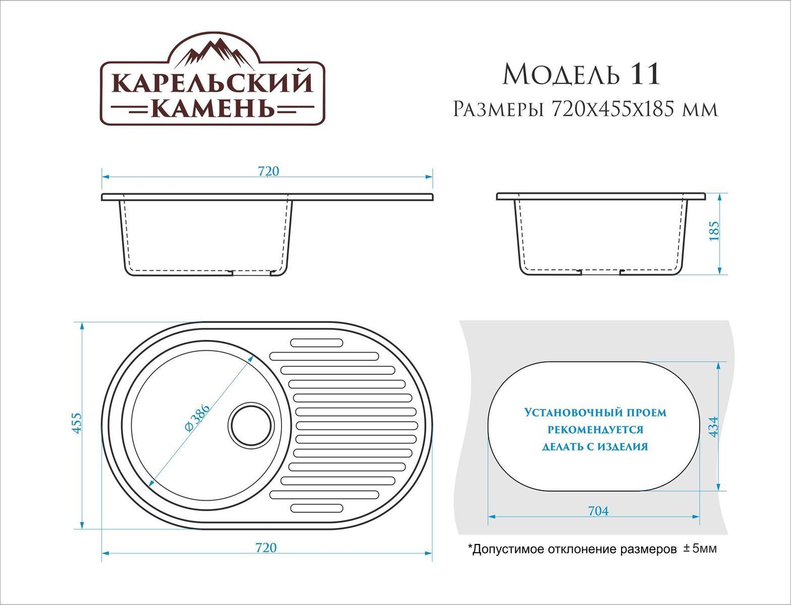 Кухонная мойка матовая Карельский Камень Модель 11