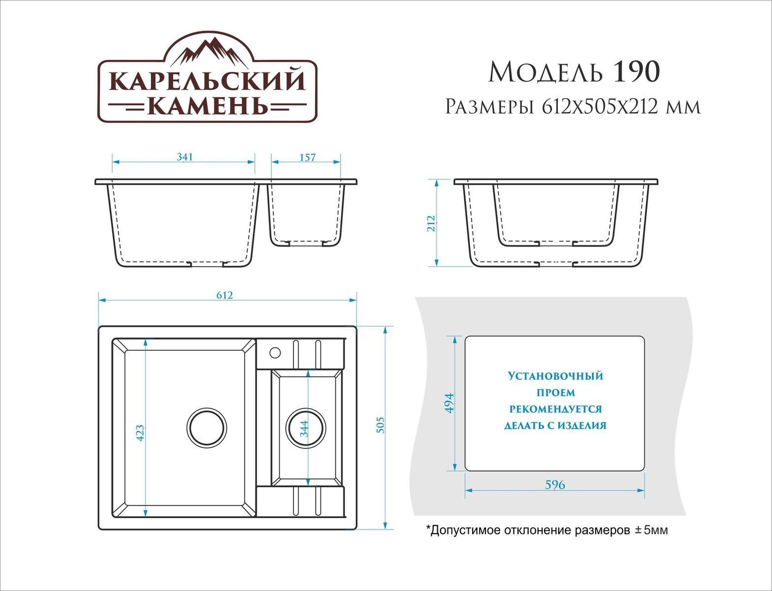 Кухонная мойка матовая Карельский Камень Модель 190