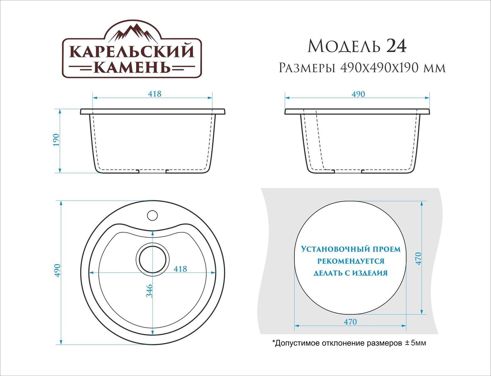 Кухонная мойка матовая Карельский Камень Модель 24