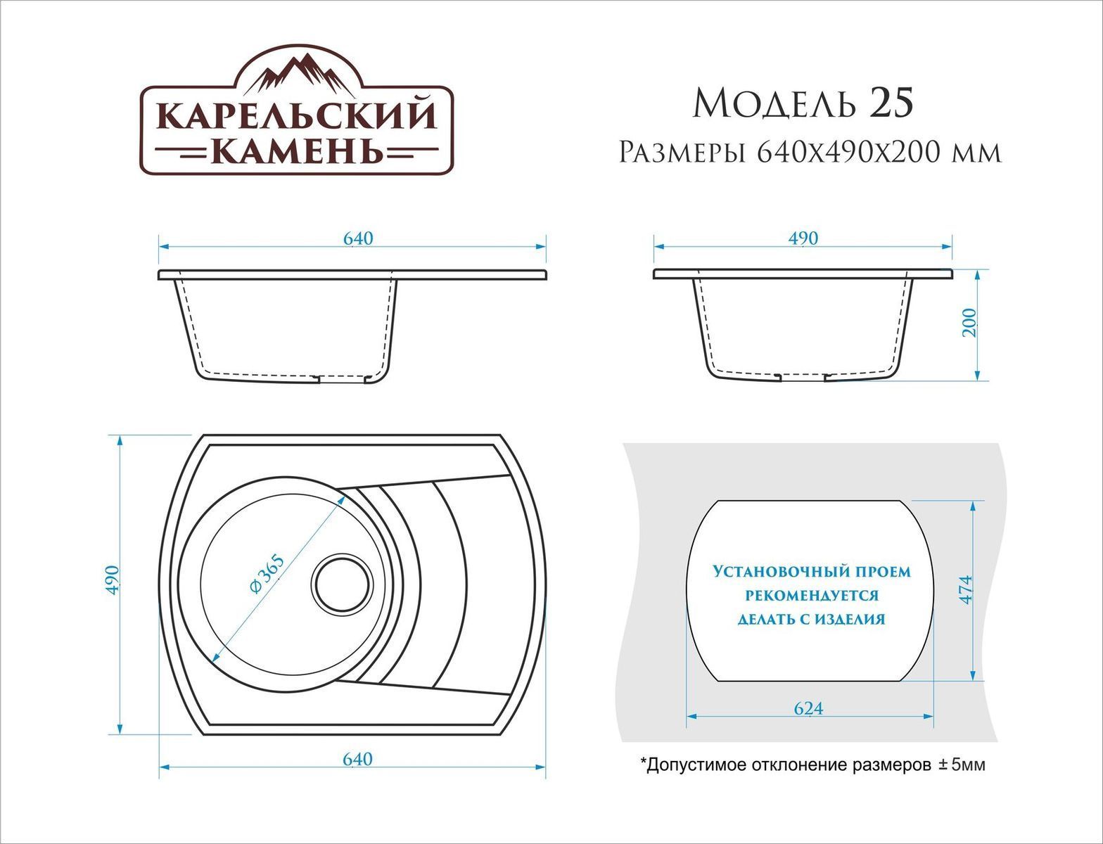 Кухонная мойка матовая Карельский Камень Модель 25