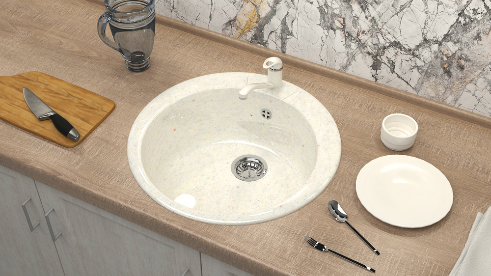 Литой камень является композицией на основе натурального молотого гранита, мрамора или кварца 80% и полиэфирной (или акриловой) смолы 20%.Изделие формируется методом вибролитья в специальных стеклопластиковых формах. В качестве базового наполнителя используется микрокальцита кварцит высочайшего качества от германского производителя. Антибактериальная составляющая препятствует распространению бактерий на поверхности кухонных моек.