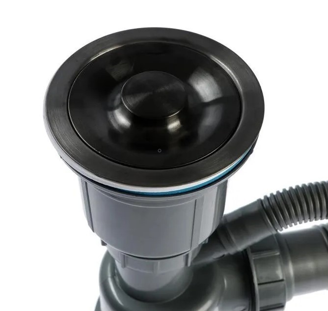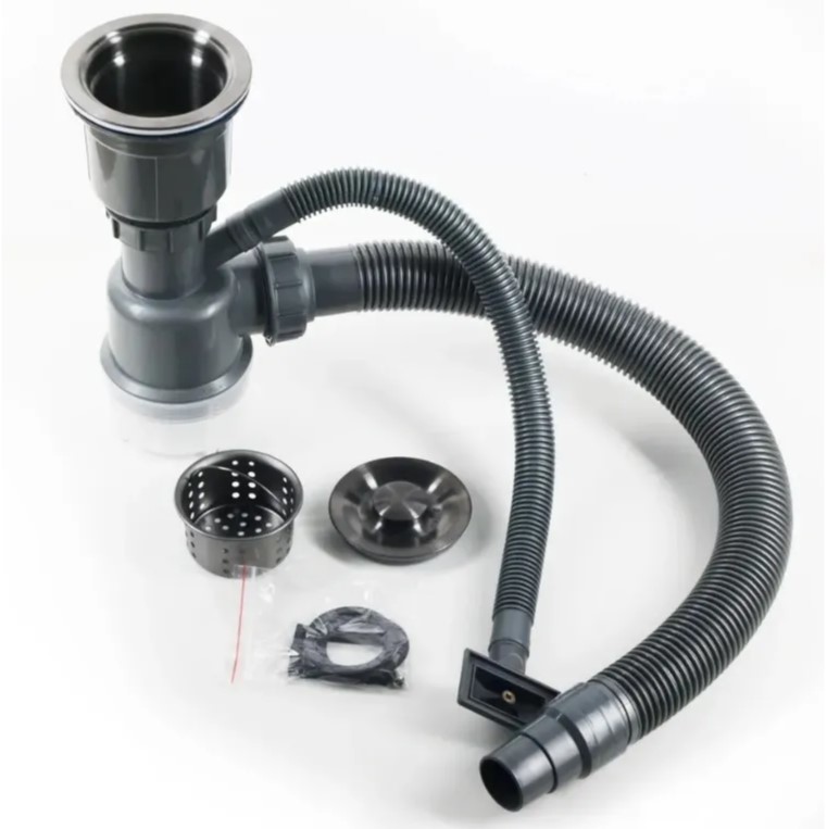 Комплектация: сифон для мойки с переливом, корзина решетка с обратным клапаном, сито. Выпуск для мойки - сливная «корзинка» с диаметром 90 мм снабжена съёмным «ситечком» и крышкой-затвором, которые удобно вынимать для чистки слива. Сифон для мойки и гофра прилагаются, дополнительно не нужно покупать сифон для кухонной мойки.