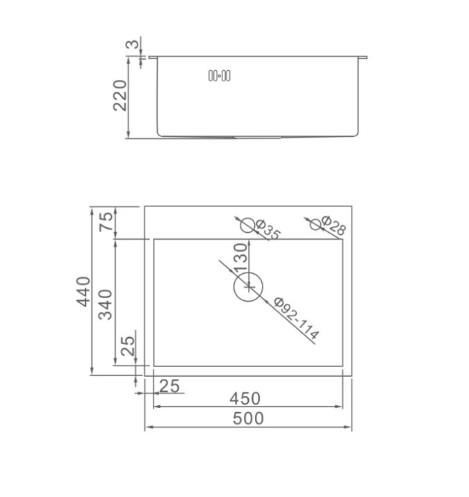 Раковина выполнена из премиальной нержавеющей стали AISI304. Толщина стенок 3 мм.