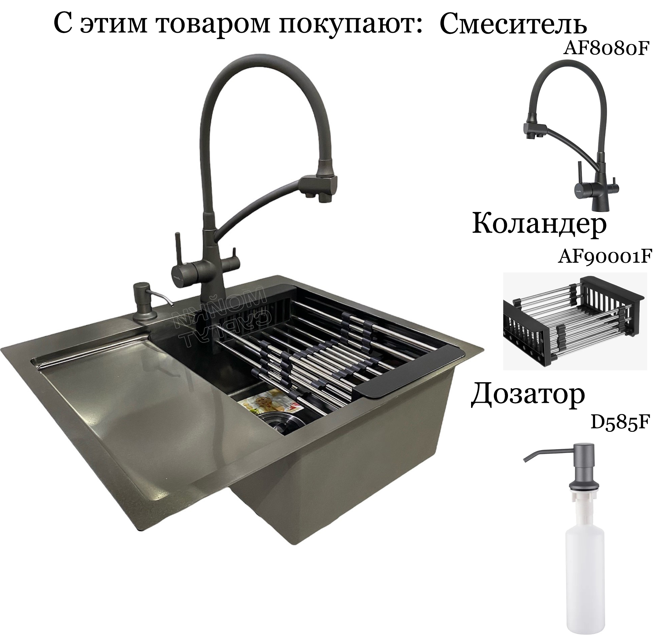 Раковина для кухни Aflorn AF95848F-R (графит) размер 58х48 см ,чаша справа.