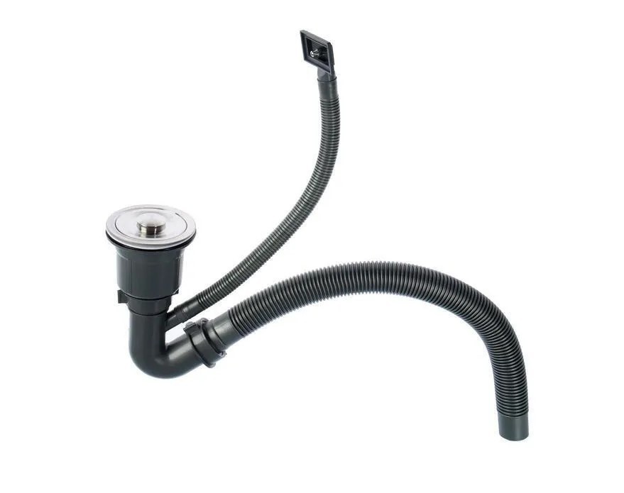 Комплектация: сифон для мойки с переливом, корзина решетка с обратным клапаном, сито. Выпуск для мойки - сливная «корзинка» с диаметром 90 мм снабжена съёмным «ситечком» и крышкой-затвором, которые удобно вынимать для чистки слива. Сифон для мойки и гофра прилагаются, дополнительно не нужно покупать сифон для кухонной мойки.