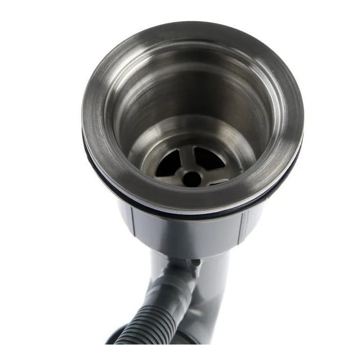 Комплектация: сифон для мойки с переливом, корзина решетка с обратным клапаном, сито. Выпуск для мойки - сливная «корзинка» с диаметром 90 мм снабжена съёмным «ситечком» и крышкой-затвором, которые удобно вынимать для чистки слива. Сифон для мойки и гофра прилагаются, дополнительно не нужно покупать сифон для кухонной мойки.