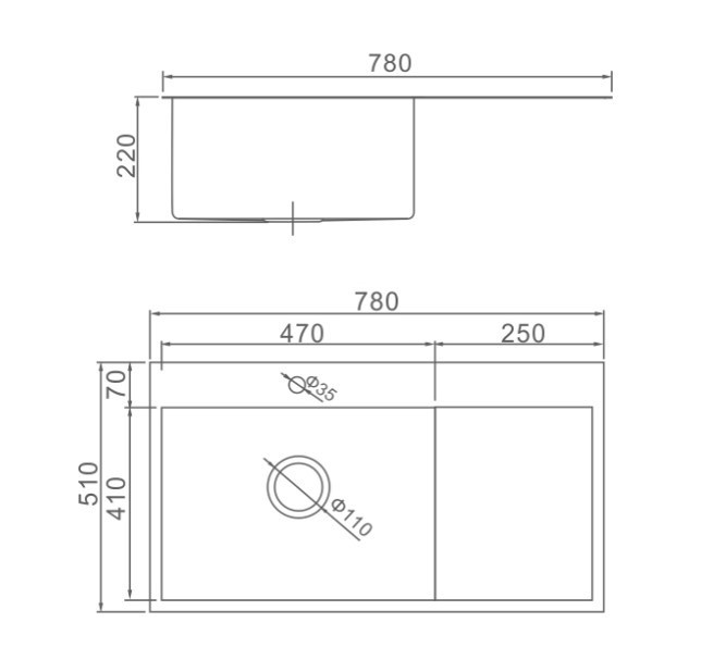 Раковина выполнена из премиальной нержавеющей стали AISI304. Толщина стенок 3 мм.