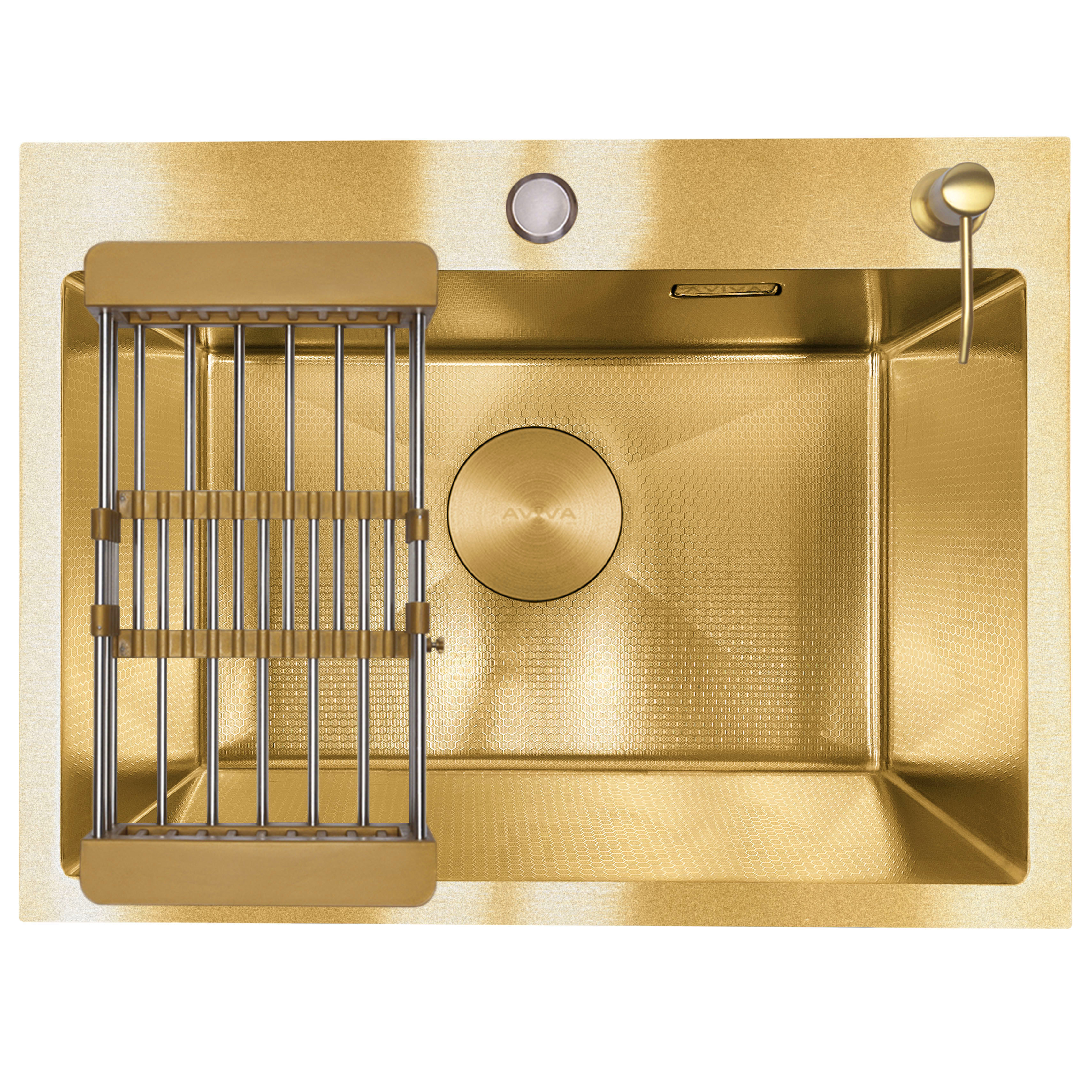 Кухонная мойка Декор (60х45см) с коландером и дозатором AVIVA GD6045, Нано-золото-декор