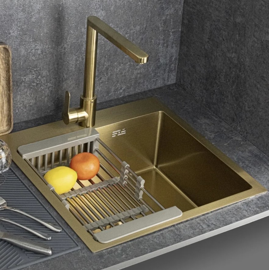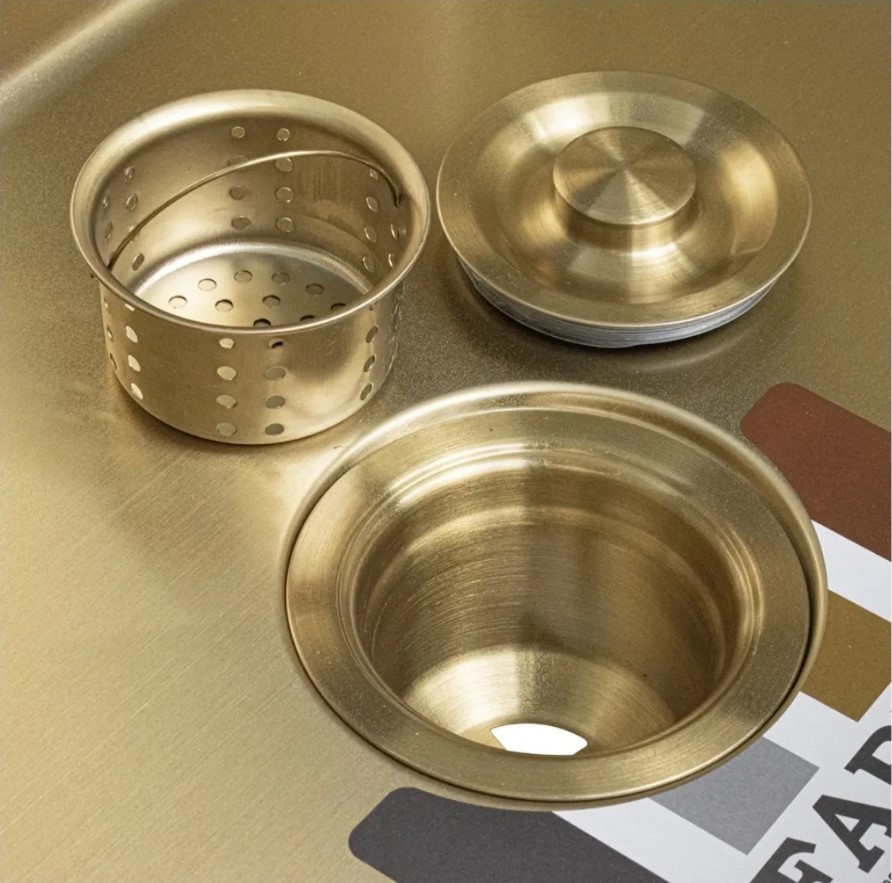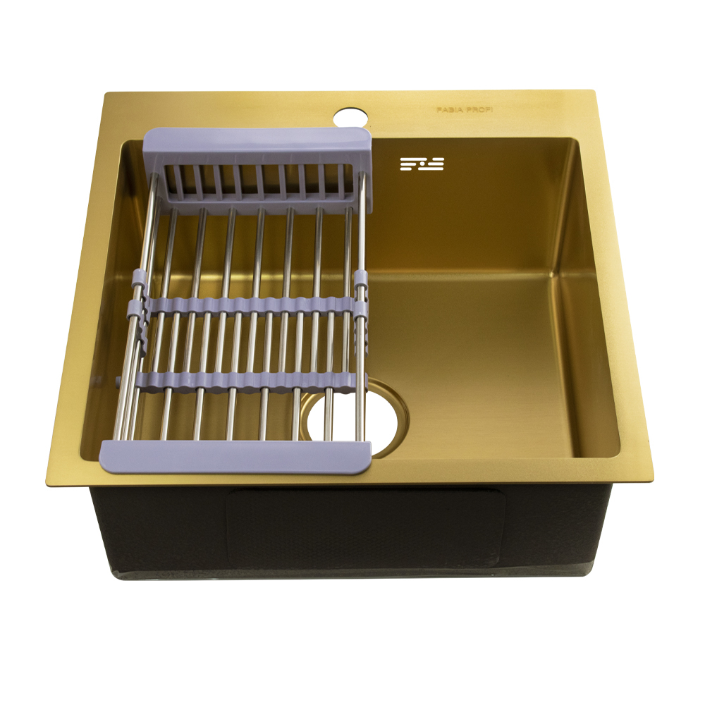Мойка FABIA Profi 50503Z 50х50см, нерж.сталь, цвет золото Мойка кухонная Материал: нержавеющая сталь Цвет/поверхность: золото Способ установки: врезная Размер, см: 50х50 Глубина чаши, см: 20 Большой сифон с переливом + корзина С отверстием под смеситель. Размер слива: 90 мм. Толщина 3,0 х 0,8 мм, глубина 200 мм. Размер чаши: 45х40 см. Размер отверстия под смеситель: 35 мм. Большая толщина металла позволяет избежать появления вмятин и деформаций, а также отличается низким уровнем шума от потока воды. Монтаж врезной мойки более трудоемкий, но позволяет избежать сырости между стыками шкафов, которая может возникнуть при эксплуатации накладных моек.К основным достоинствам нержавеющих моек можно отнести долговечность, устойчивость к коррозии, воздействию химических веществ и появлению пятен.