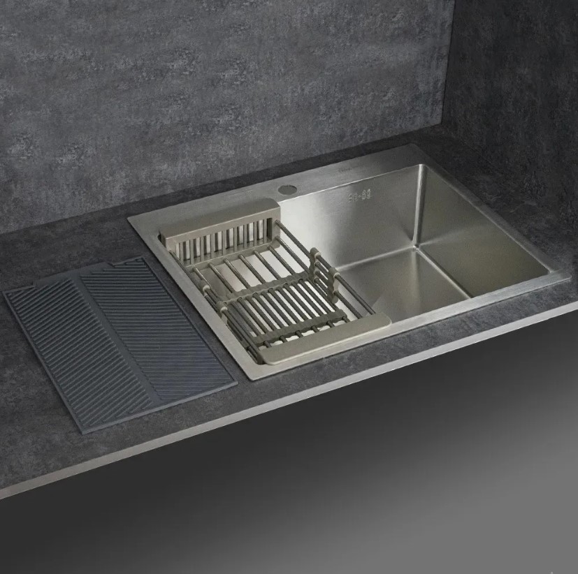 Скругленные внутренние углы облегчают уход за мойкой, препятствуют скоплению частичек грязи. Тихой в использовании мойку делает шумоизолирующее покрытие и накладки с обратной стороны мойки.
