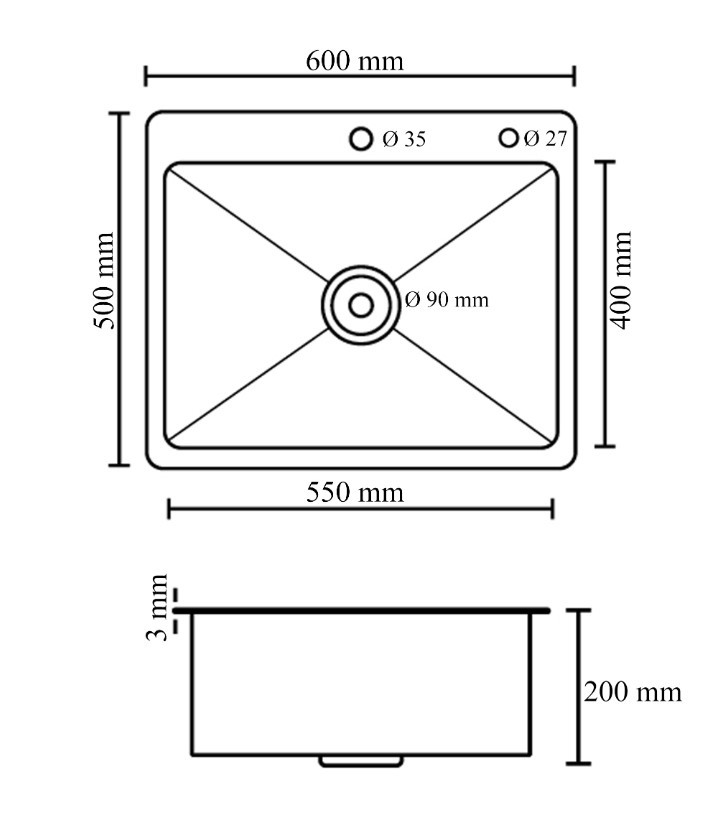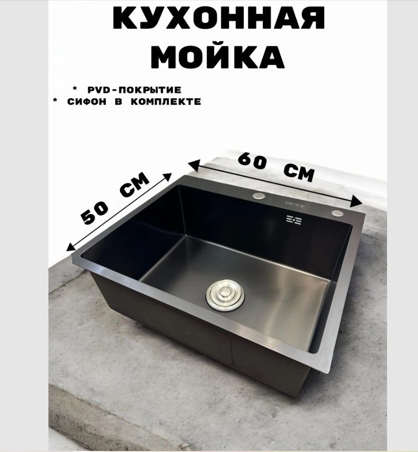 Кухонная мойка OUTE T76050H 60х50 черная декор