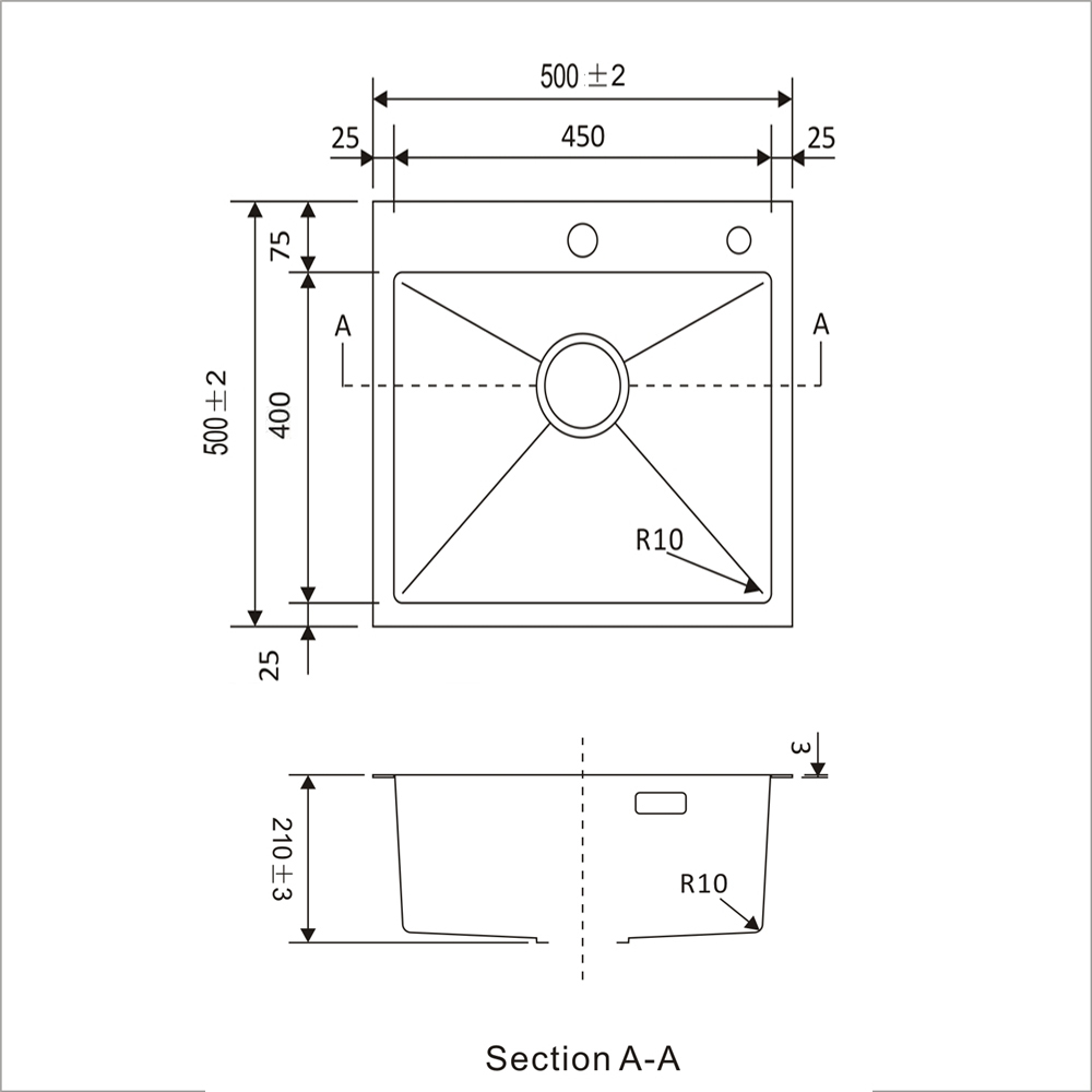 Мойка для кухни SANRINO S5050S из нержавеющей стали 50Х50 сатин