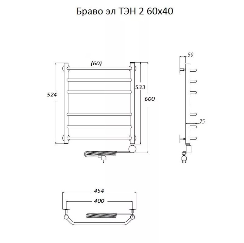 Полотенцесушитель электрический Тругор Браво 2 эл ТЭН 60*40 (арт. Браво2/элТЭН6040).