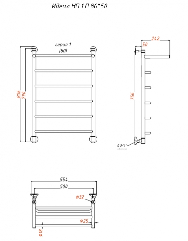 Водяной полотенцесушитель Тругор Идеал 1 80х50П, с полкой, хром