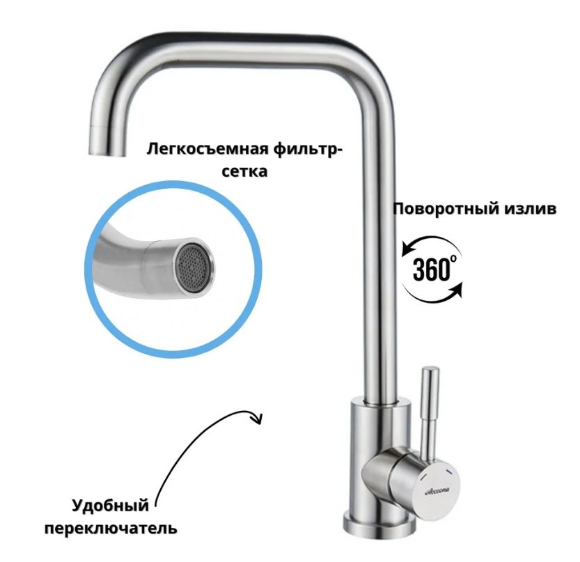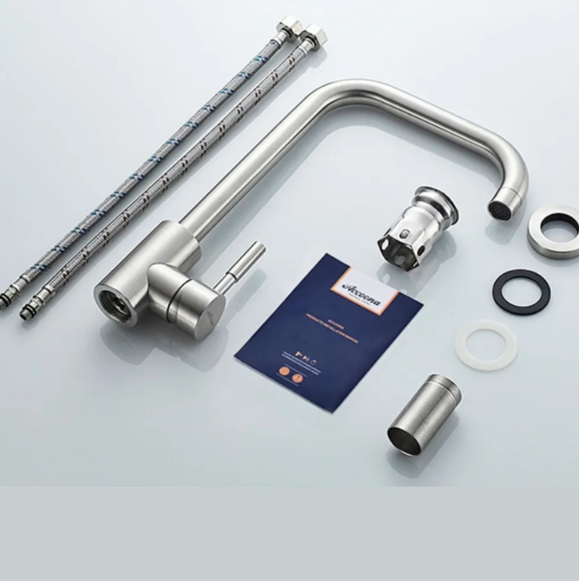 Смеситель для кухни из нержавеющей стали. Высокое качество хром-никелевого покрытия. Производство товаров под брендом Accoona является крупной корпорацией, специализирующейся на выпуске сантехнической продукции: высококачественных смесителей и их комплектующих, а также аксессуаров для ванны. Корпорация Accoona самостоятельно проектирует и производит свою продукцию. Продукция изготовлена на оборудовании из Италии, Германии, Испании. Высококачественная продукция имеет хороший отзыв у покупателей.Компания постоянно работает над усовершенствованием, чтобы удовлетворить клиентов качеством продукции. С 2001 года компания прошла сертификацию ISO9001:2008, получила международный сертификат CE, NSF, получила название «экологический смеситель». Марка Accoona имеет признание и пользуется спросом на мировом рынке.