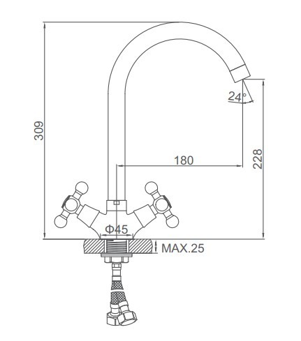 - Высота излива (см): 22