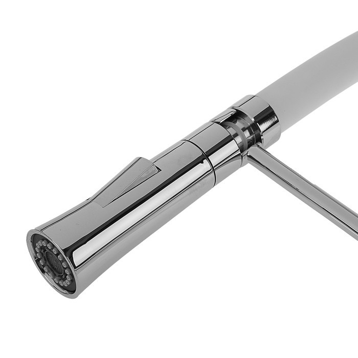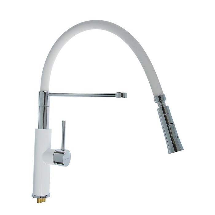 Смеситель для кухни с латунным корпусом и силиконовым изливом, однорычажный. Цвет: белый/белый. Излив можно изогнуть на 360 градусов. Излив имеет два режима: обычный поток и душ. В комплекте подводка для воды. Высокое качество хром-никелевого покрытия. Производство товаров под брендом Accoona является крупной корпорацией, специализирующейся на выпуске сантехнической продукции: высококачественных смесителей и их комплектующих, а также аксессуаров для ванны. Корпорация Accoona самостоятельно проектирует и производит свою продукцию. Продукция изготовлена на оборудовании из Италии, Германии, Испании. Высококачественная продукция имеет хороший отзыв у покупателей.Компания работает над усовершенствованием первого класса марки, чтобы удовлетворить клиентов качеством продукции. Марка Accoona имеет признание и пользуется спросом на мировом рынке.