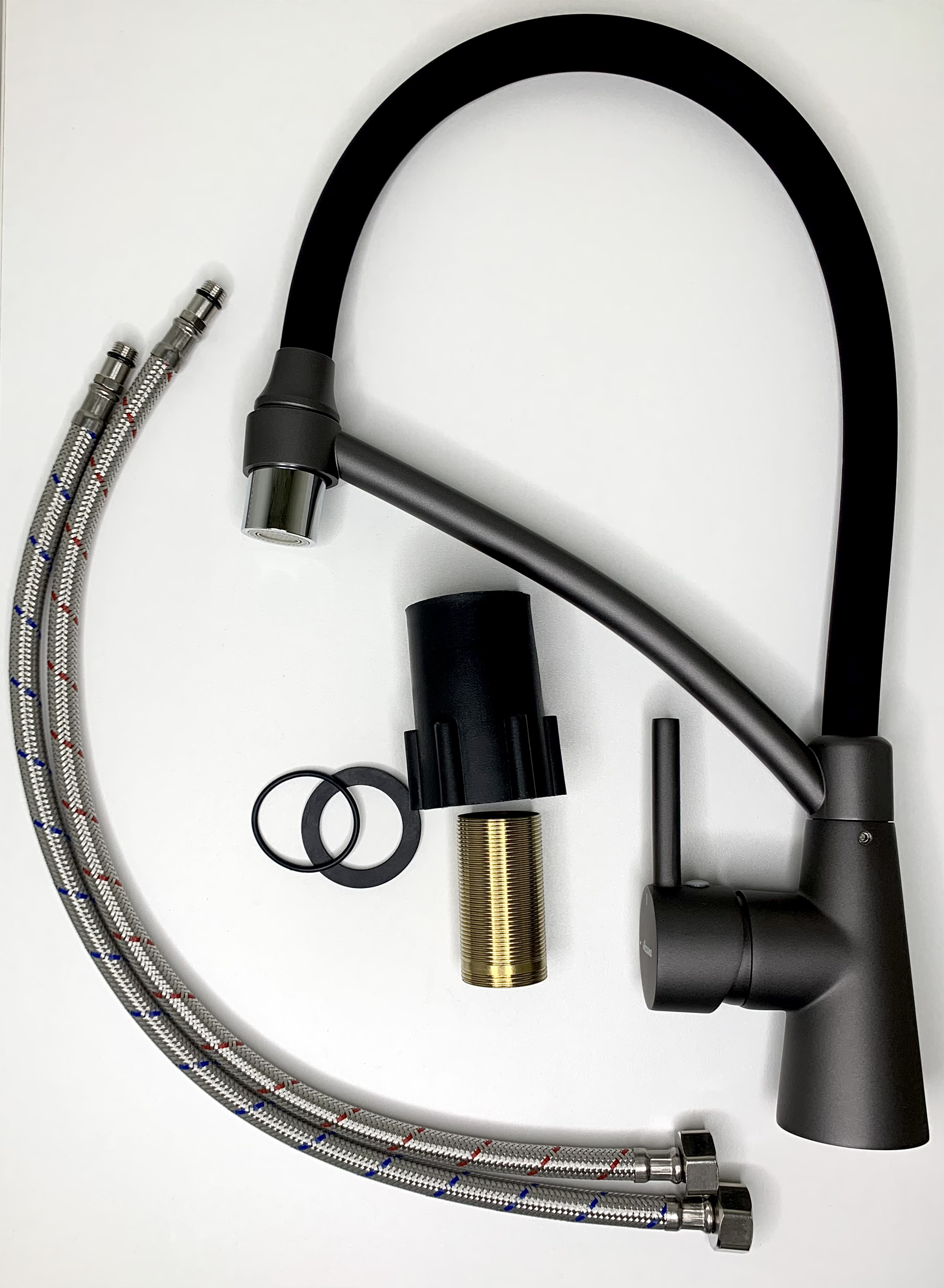 Смеситель для кухни Accoona A4890TF-2 с чёрным гибким изливом