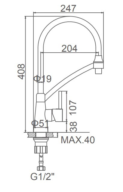 - Длина излива (см): 20