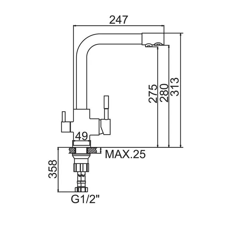- Высота излива (см): 28