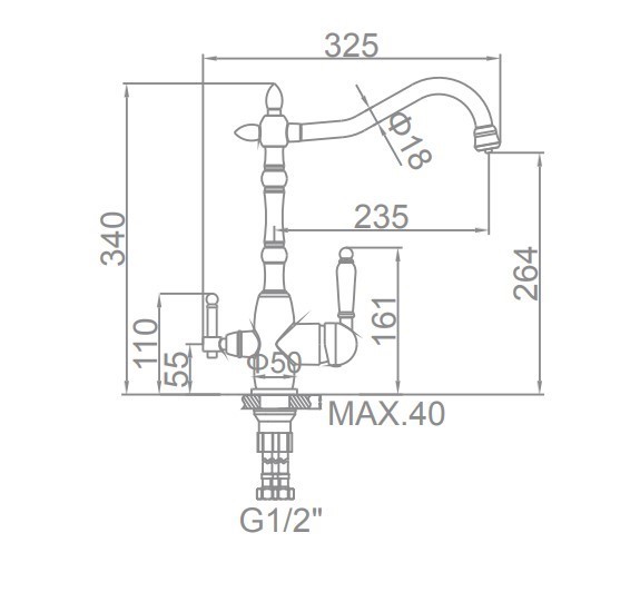 - Высота излива (см): 26