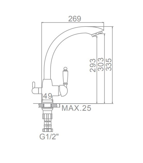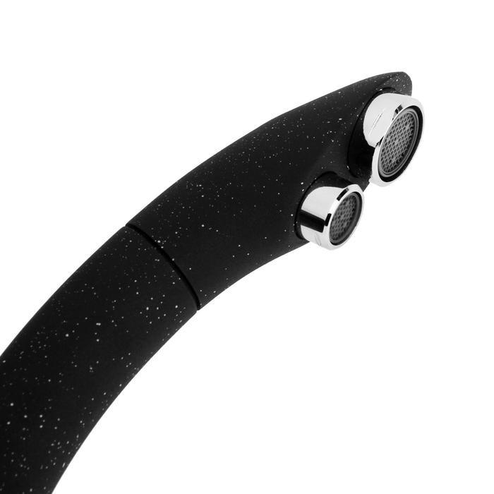 Смеситель с длинным высоким изливом устанавливается на мойку. К сантехнике возможно подключение фильтра для подачи питьевой воды. Напор очищенной жидкости регулируется отдельным рычагом. Модель оснащена дополнительным герметичным затвором, благодаря которому струи проточной и фильтрованной воды не перемешиваются.