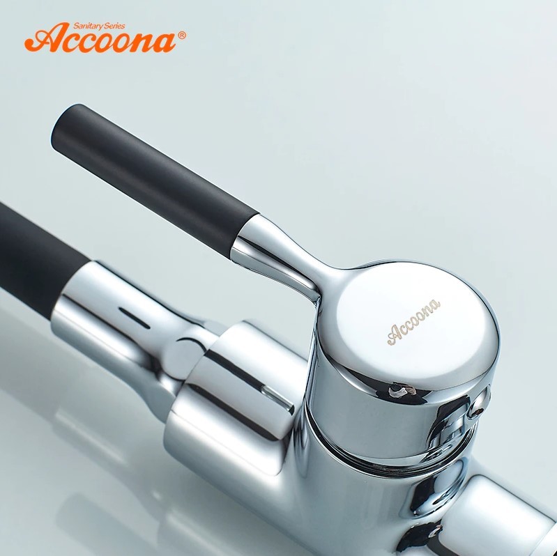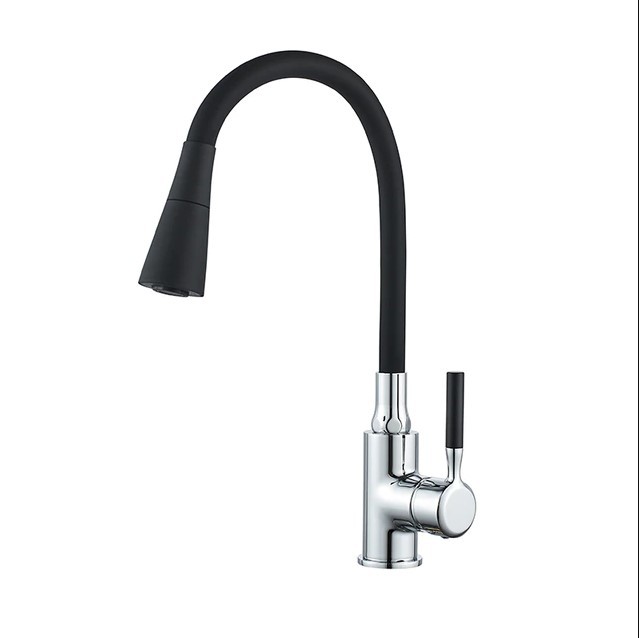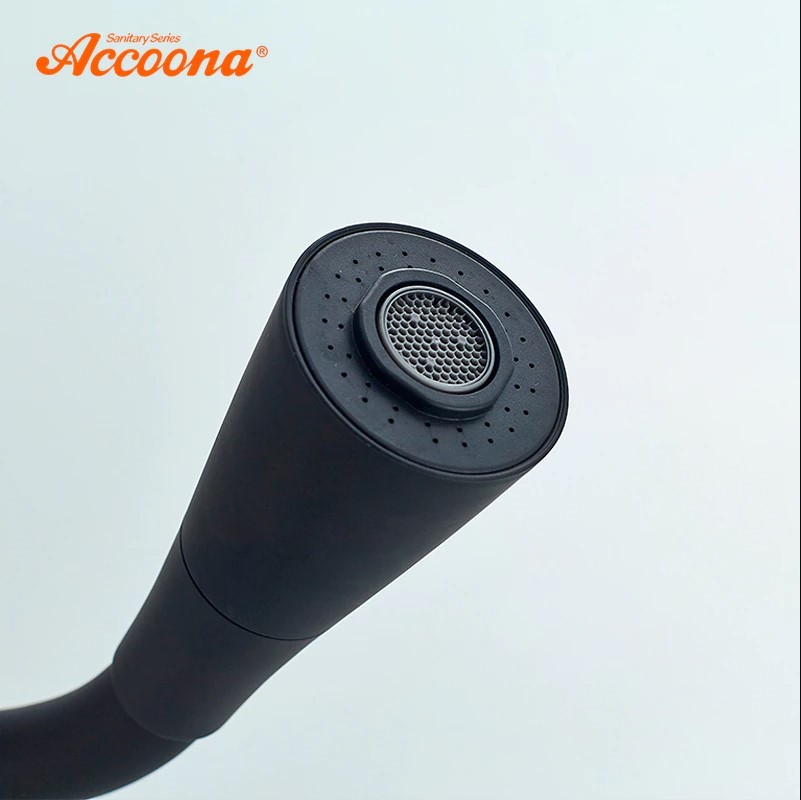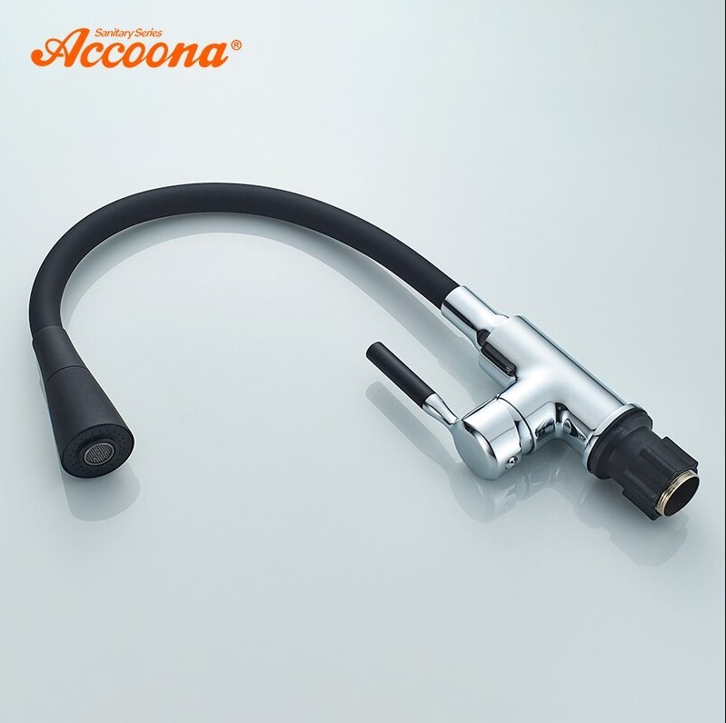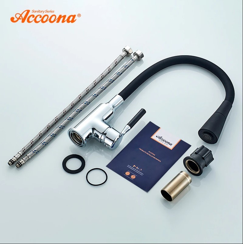 Смеситель для кухни Accoona A9890F-1 с чёрным гибким изливом