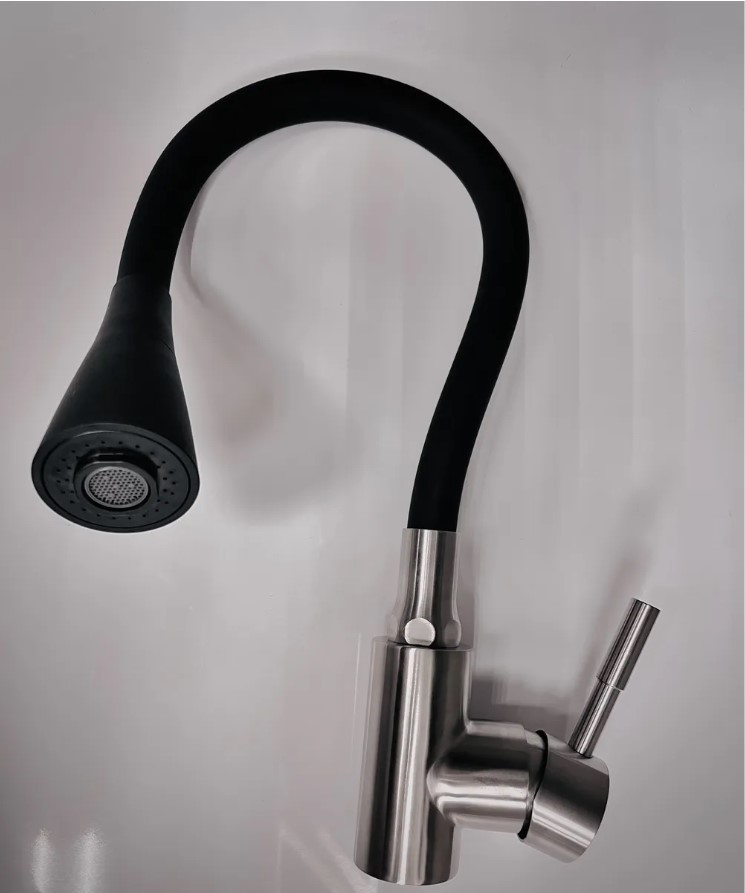 Смеситель для кухни Accoona A9890F-3 с чёрным гибким изливом