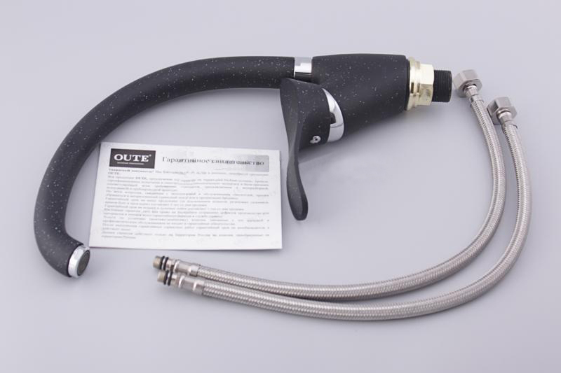 Смеситель для кухни OUTE T0113BK-2, представленная модель позволит легко регулировать температуру и напор воды, с помощью однорычажного управления. Аэратор в приборе обеспечивает равномерный поток воды и ее смягчение. Сетка внутри устройства отфильтровывает нежелательные примеси. Прибор монтируется на гайке, нижняя часть корпуса вставляется в отверстие для установки и затягивается гайкой. Современный прибор – соединение классического конструкционного решения и самого смелого и необычного оформления. Сантехника идеально подойдет для тех, кто постоянно стремится шагать в ногу с нашим временем. Материал корпуса - латунь, проверенный красивый материал, который обеспечивает отличное напыление хромированного покрытия. Прибор традиционной округлой формы. Известная модель, которая обладает поворотным изливом. Его можно вращать в различные стороны, что значительно повышает производительность использования такого сантехнического прибора. Монтаж данной модели выполняется на одно отверстие для смесителя.