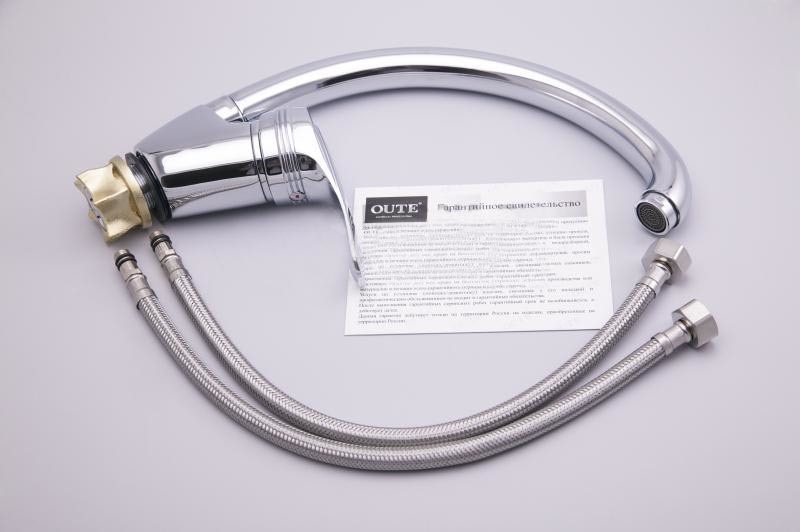 Смеситель для кухни OUTE T1513B, оснащен одной рукоятью чтобы регулировать напор воды. Высококачественный аэратор в смесителе обеспечит одинаковый поток воды, по причине того, что специальная металлическая сеточка рассеивает напор, вода смягчается. Также сеточка отфильтрует примеси и сэкономит около пяти кубометров воды в течение года. Представленный тип смесителей характеризуется наиболее простым видом монтажа, он фиксируется на столешнице или раковине при помощи гайки. Гайка прижимает его к поверхности, закручиваясь с обратной стороны монтажного отверстия. Современные приборы – соединение классических конструкционных решений и одновременно с этим необычного и смелого дизайна. Подобная сантехника отлично подойдет тем, кто хочет шагать в ногу с современностью. К представленной группе товаров принадлежит традиционный тип смесителей, сделанных из латуни – прочного, надежного и долговечного металла. Модели этого типа обрабатываются хромированным покрытием, и в итоге имеют идеальный внешний вид. Один из наиболее традиционных вариантов оформления сантехнических смесителей. Его округлая форма помогает прибору выглядеть максимально стильно и привлекательно для человеческих глаз. Модель, которая имеет поворотный излив. Его можно вращать в различные стороны, что намного повышает эффективность применения такого сантехнического прибора. При монтаже данной модели достаточно, если в умывальнике или раковине имеется всего одно отверстие под прибор. В основном, подобный подход гарантирует легкий и быстрый монтаж.
