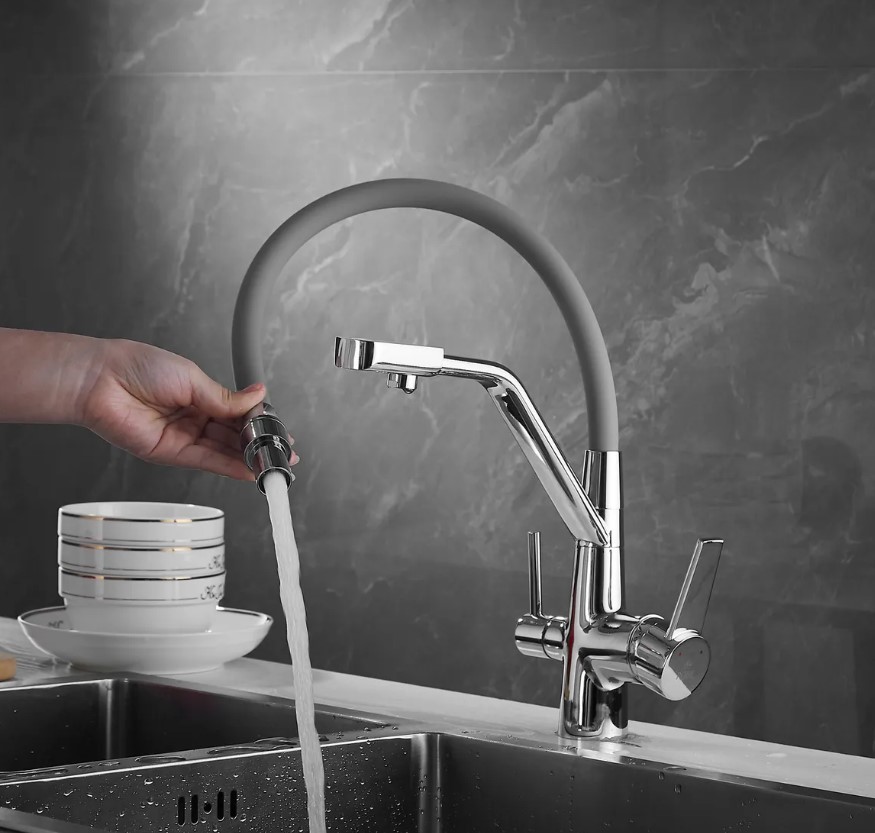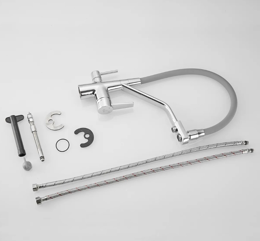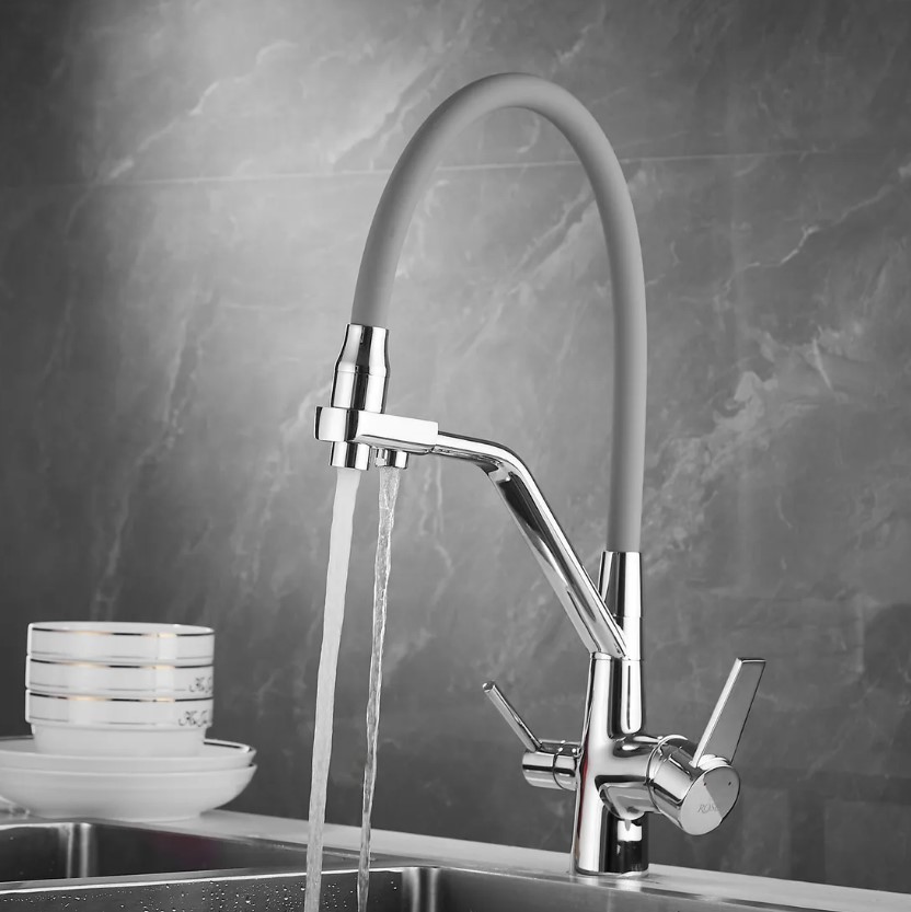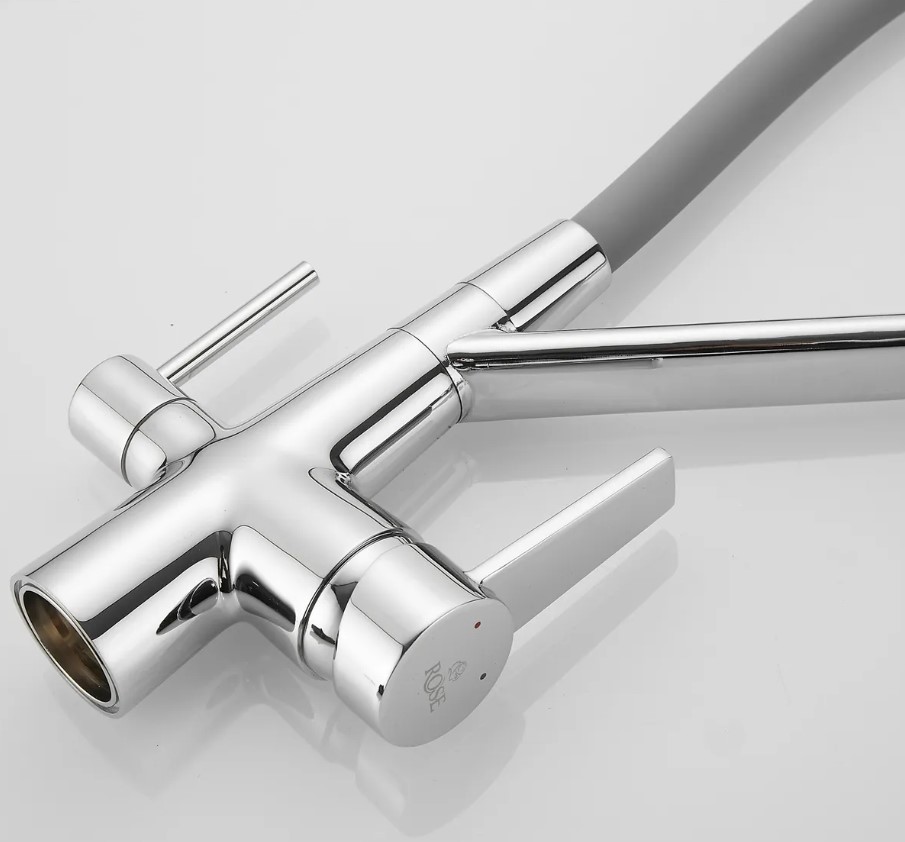Смеситель для кухни Rose J2030 ХРОМ с гибким изливом с подключением к фильтру питьевой воды