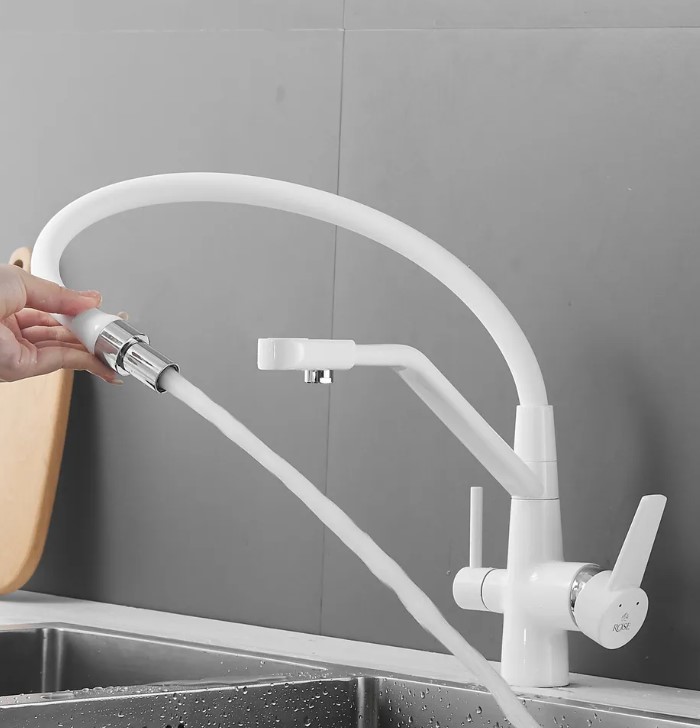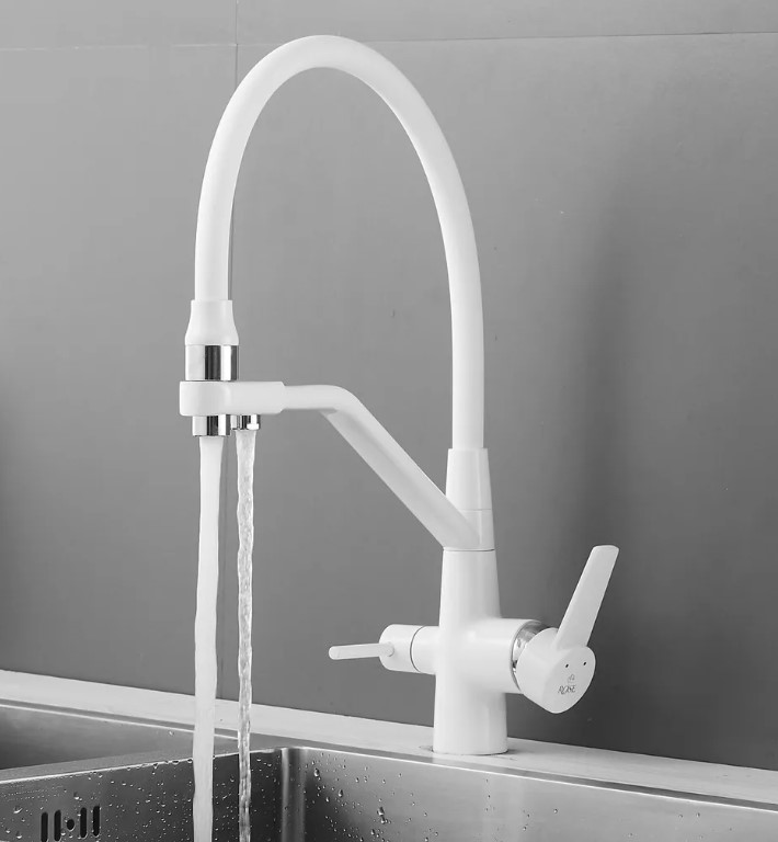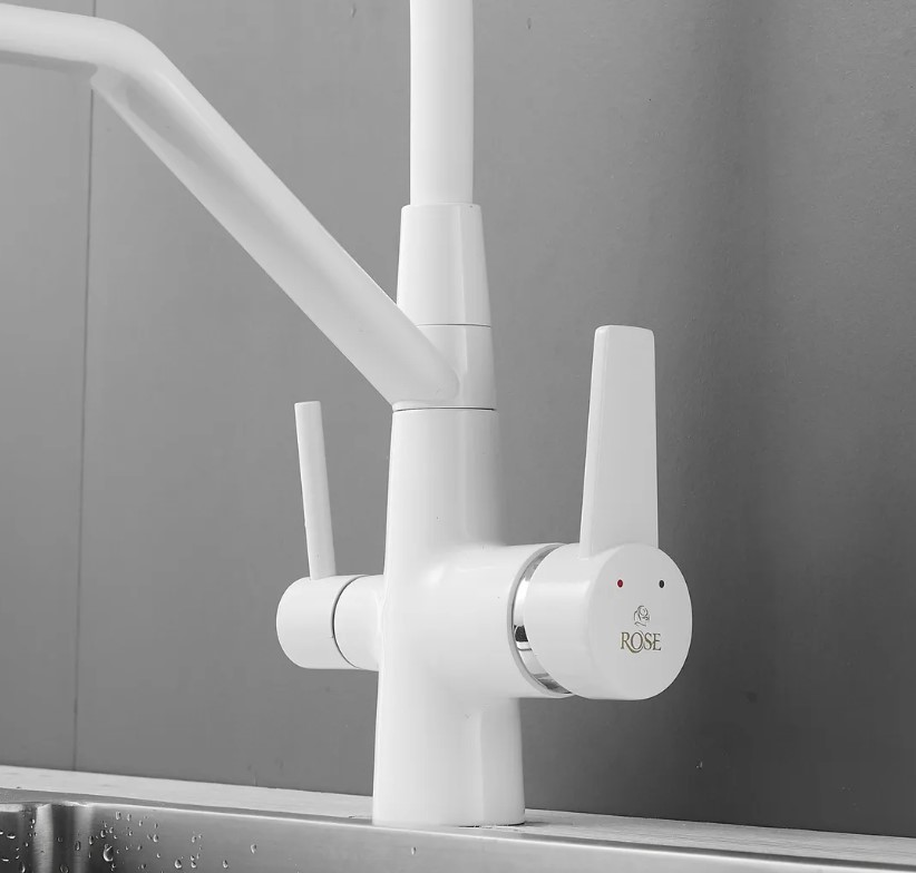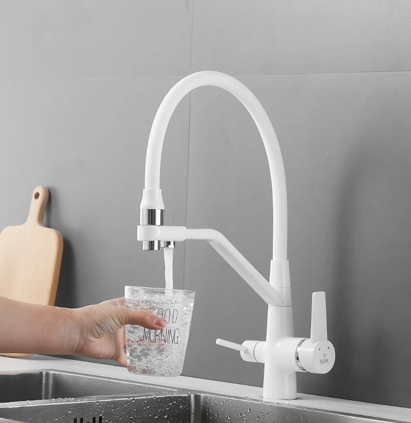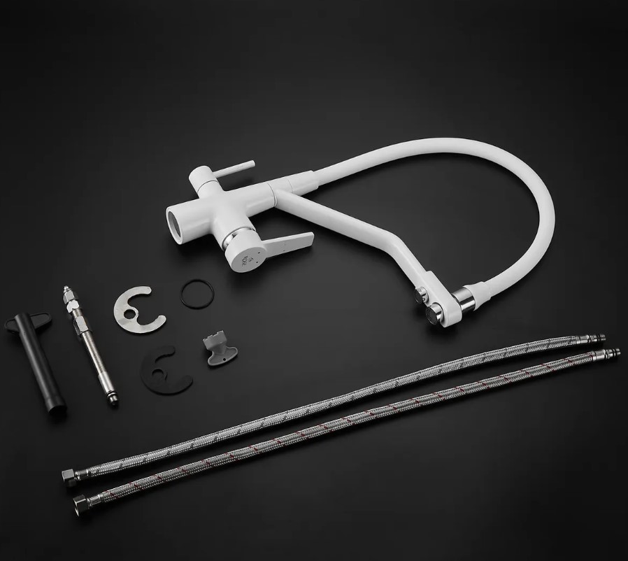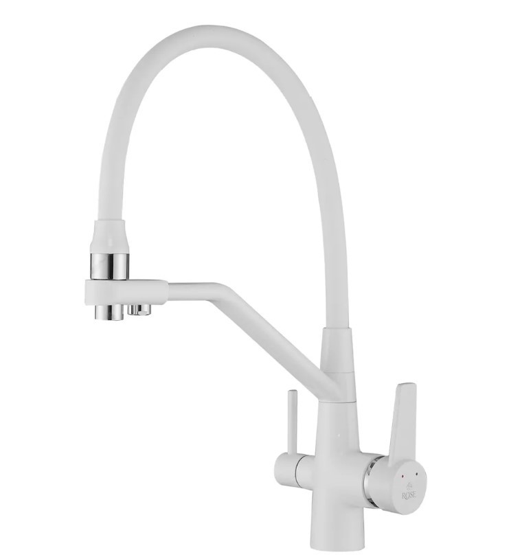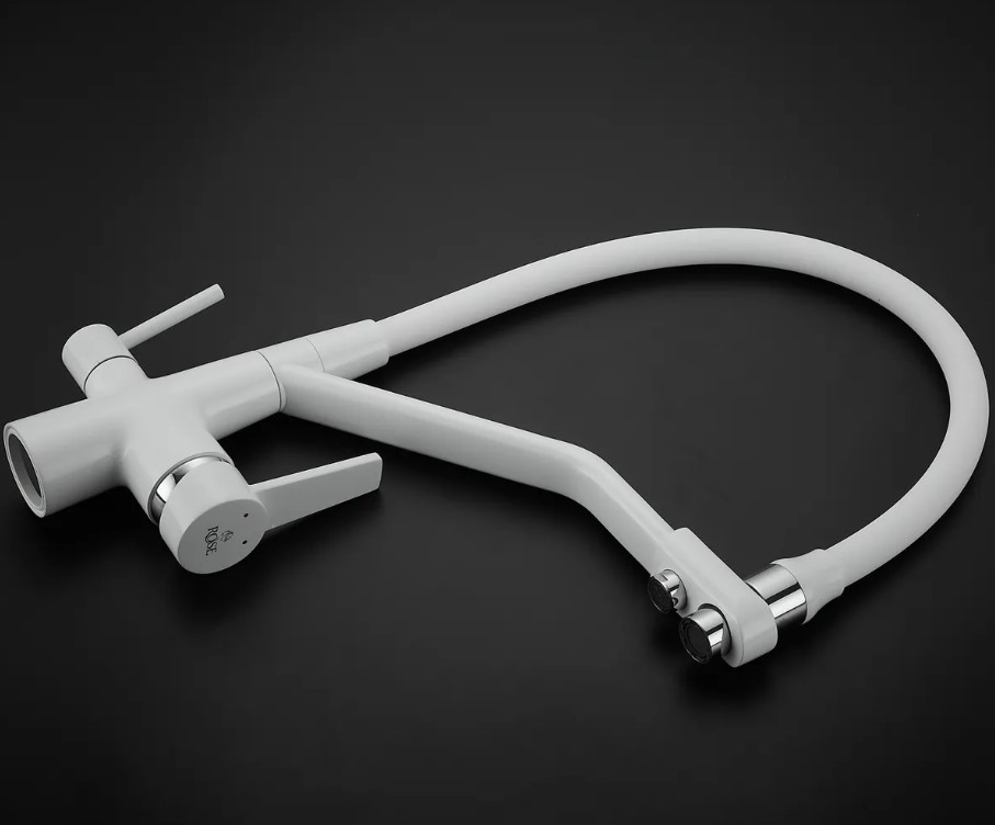 Смеситель для кухни Rose J2030W БЕЛЫЙ с гибким изливом с подключением к фильтру питьевой воды