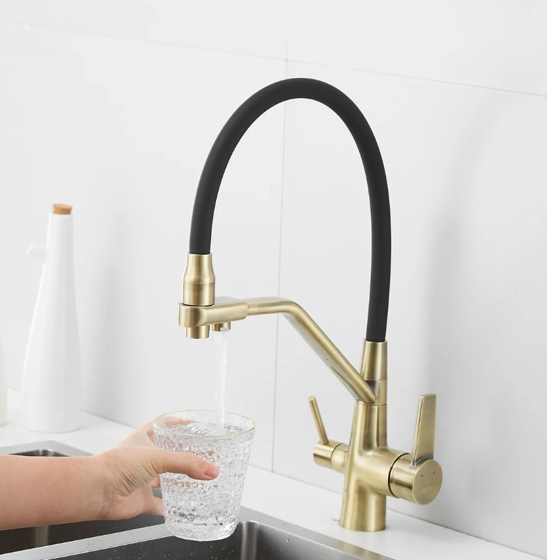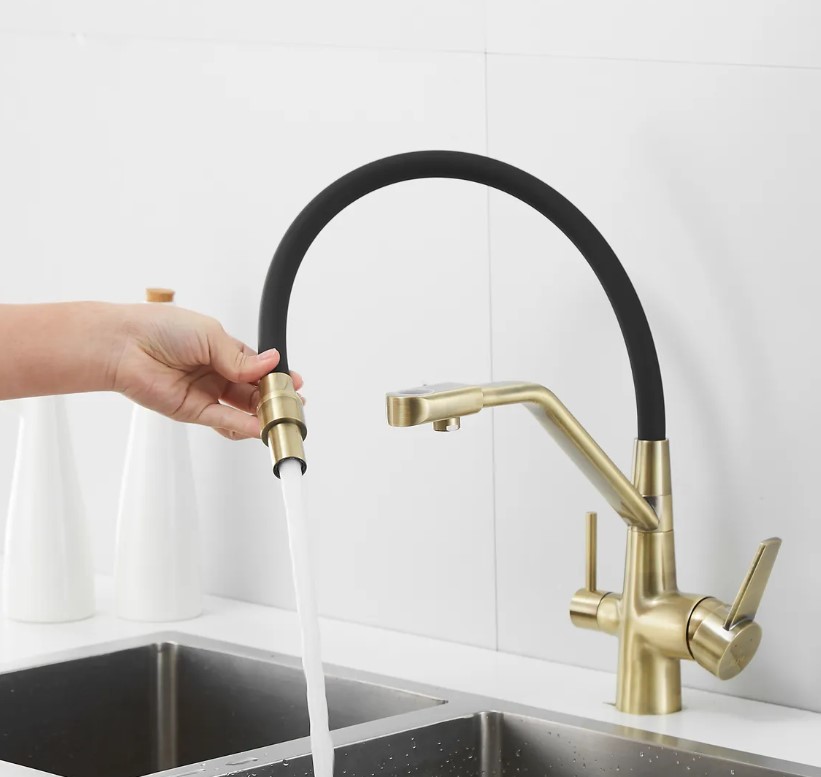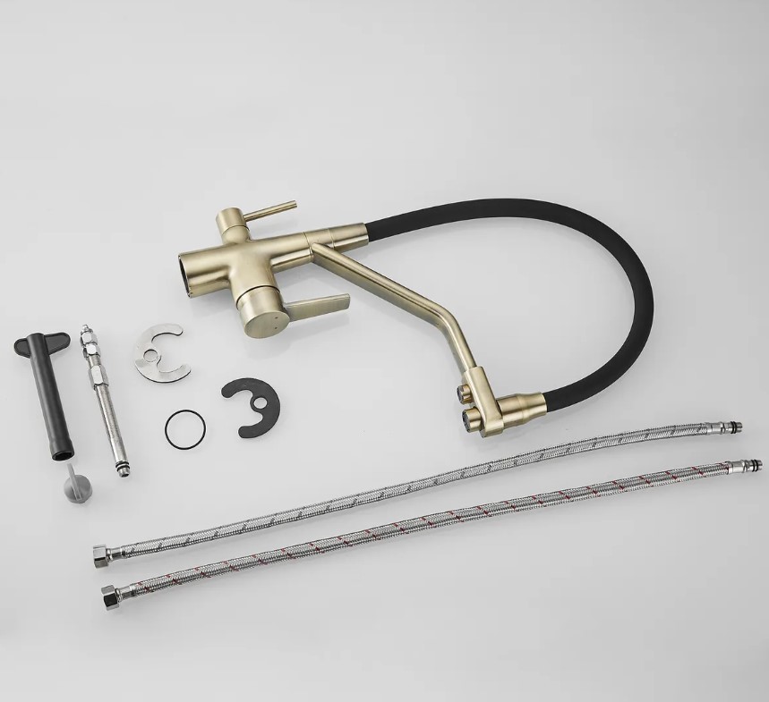 Смеситель для кухни Rose J2030MB с гибким изливом с подключением к фильтру питьевой воды