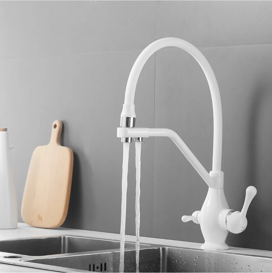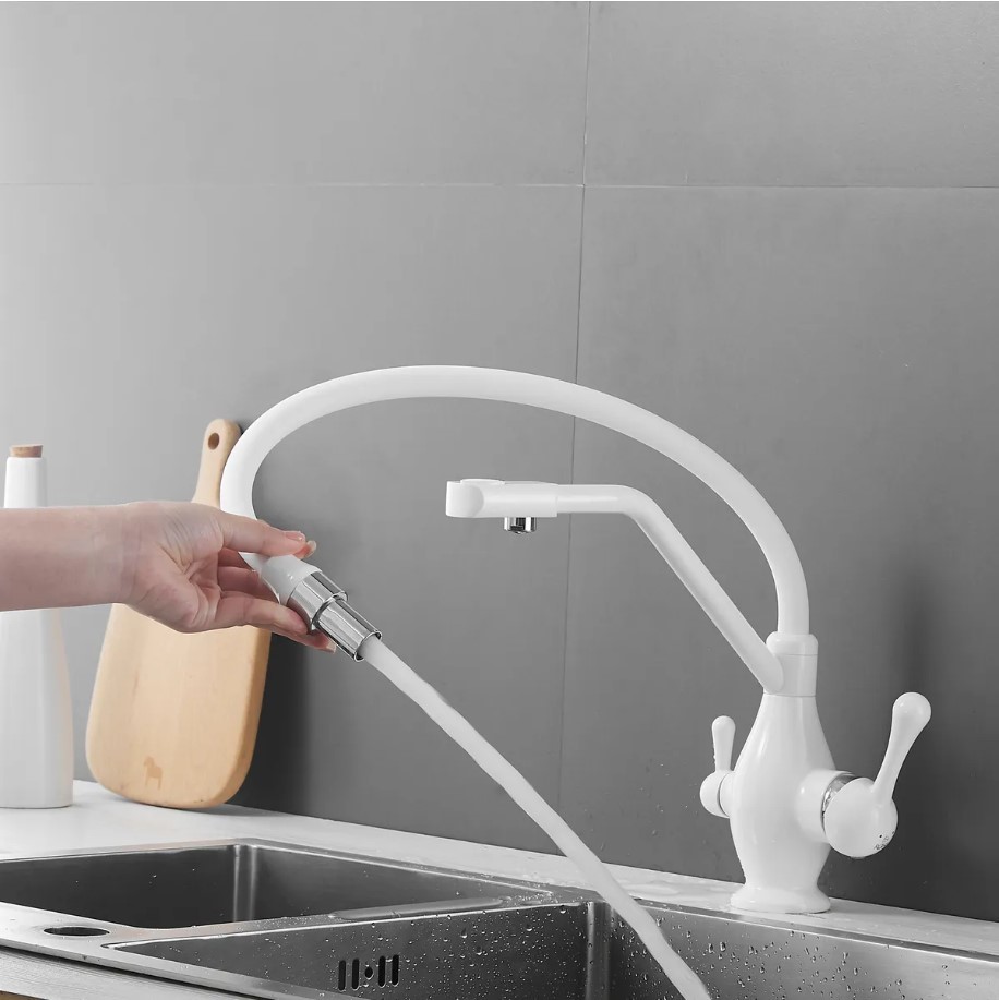 Смеситель для кухни Rose J2050W с гибким изливом с подключением к фильтру питьевой воды