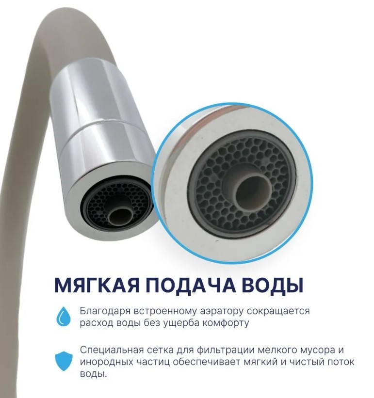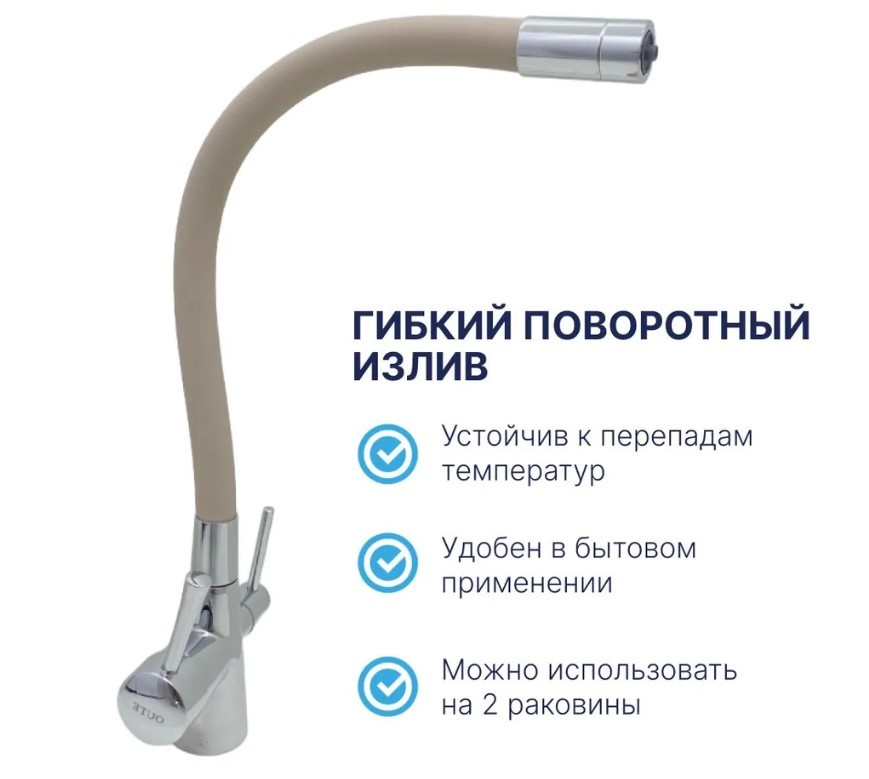 Смеситель для кухни с фильтром для питьевой воды и бежевым гибким изливом Oute P4020-R БЕЖЕВЫЙ