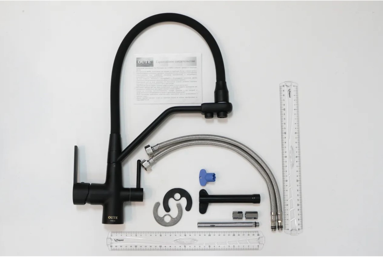 Смеситель для кухни с фильтром для питьевой воды и гибким изливом Oute P4030CF МАТОВЫЙ ЧЁРНЫЙ