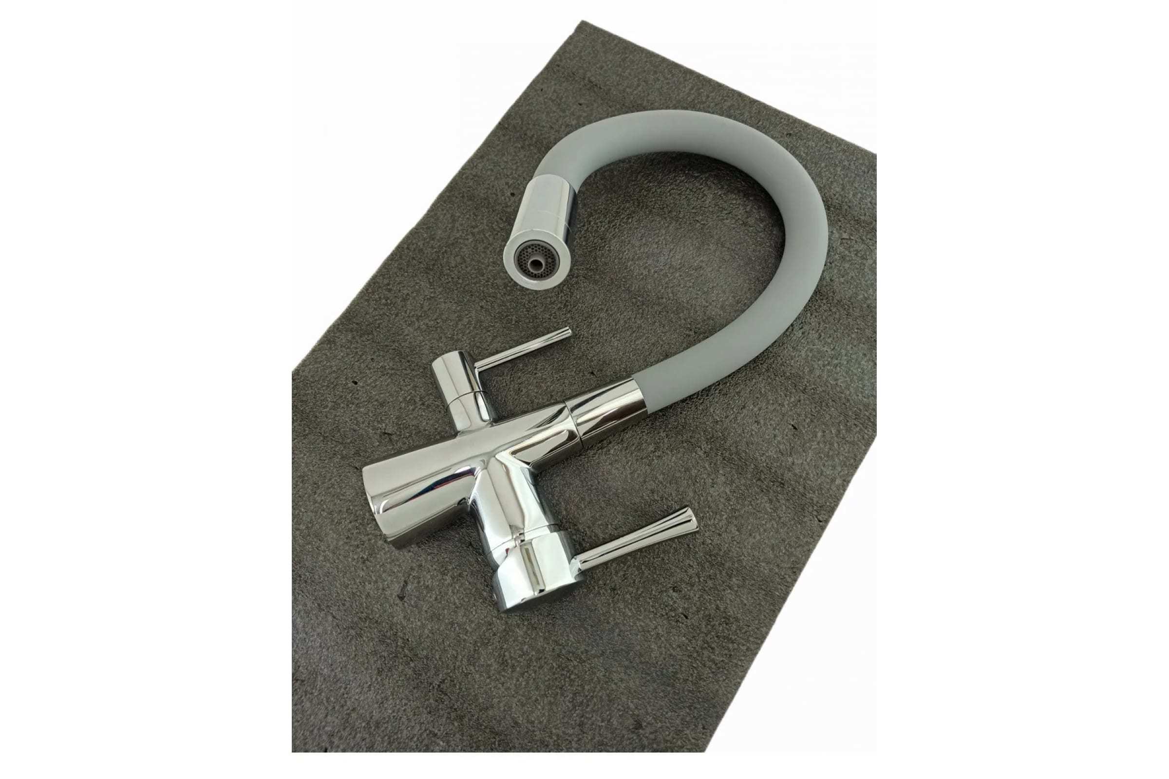 Смеситель для кухни с фильтром для питьевой воды и серым гибким изливом Oute P4020-D ХРОМ/СЕРЫЙ