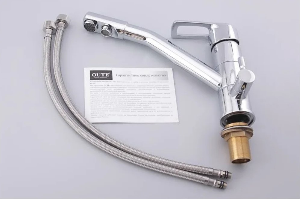 Смеситель для кухни со встроенным фильтром (краном) под питьевую воду OUTE P4050, одна рукоять для регулировки напора воды. Подобные Приборы оснащены встроенным фильтром, который очищает воду. Модели имеют переключатель, чтобы выбирать, какую воду вам необходимо получить – фильтрованную или обычную. Аэратор в смесителе поможет обеспечить равномерную подачу воды , а также ее относительноесмягчение. Специальная сетка внутри устройства отфильтровывает различные примеси. Модель устанавливается с помощью гайки, нижняя часть смесителя вставляется в специальное отверстие для установки и затягивается гайкой. Современные смесители – это объединение традиционного конструкционного решения и вместе с тем смелого и необычного дизайна. Подобного рода сантехника прекрасно подходит для тех, кто постоянно стремится шагать в ногу с современностью. Основной материал данного прибора - латунь, это надежный материалвысочайшего качества, который обеспечивает идеальное нанесение хромированного покрытия. Один из наиболее традиционных вариантов оформления. Округлая форма позволяет прибору выглядеть максимально стильно и привлекательно для человека. Излив прибора имеет возможность вращения, что положительно влияет на практичность. Прибор оснащен керамической кран-буксой. При монтаже будет достаточно, когда в умывальнике или раковине находится всего одно отверстие , отведенное под прибор. В большинстве случаев, данный подход обеспечивает легкий и быстрый монтаж.
