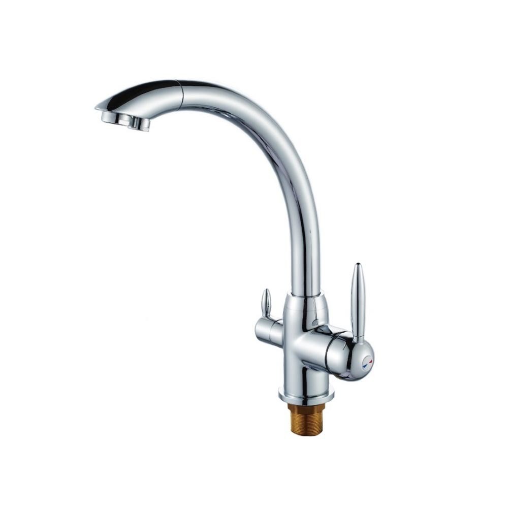 Смеситель для кухни со встроенным фильтром (краном) под питьевую воду OUTE P4057, представленная модель позволяет с лёгкостью регулировать напор и температуру воды, с помощью однорычажного управления. Функциональный прибор имеет переключатель на питьевую и обычную воду. Оттоки изолированы между собой. Таким образом, обычная водопроводная вода не будет смешиваться с фильтрованной. Аэратор гарантирует одинаковый поток, из-за того, что металлическая сеточка будет рассеивать напор, вода становится мягче. Сеточка отфильтрует примеси и сбережет около 5 кубометров воды в год. Этот тип смесителей отличается одним из самых простых видов установки, он фиксируется на столешнице или раковине посредством гайки. Она прижимает его к поверхности, закручиваясь с обратной стороны монтажного отверстия. Современный смеситель – соединение классического конструкционного решения и самого необычного и смелого оформления. Подобная сантехника идеально подходит для тех людей, кто желает шагать в ногу с современностью. К представленной категории товаров относится традиционный тип смесителей, которые изготовлены из латуни – надежного, долговечного, прочного металла. Модели этого типа обрабатываются качественным покрытием, благодаря чему обладают идеальным внешним видом. Модель привычной округлой формы. Модель, обладающая поворотным изливом. Его можно вращать в различные стороны, что повышает эффективность применения такого сантехнического прибора. Смеситель оснащен керамической кран-буксой. При установке данной модели достаточно, когда в умывальнике или раковине имеется всего одно отверстие , отведенное под смеситель. Чаще всего, такой подход обеспечивает быстрый и легкий монтаж.