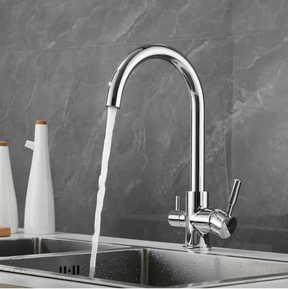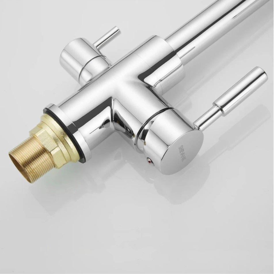 Cмеситель для кухонной мойки под фильтр с краном для питьевой воды и повортным изливом Shevanik V1011. Сантехника торговой марки SHEVANIK – это элегантный дизайн и качество соответствующее строгим европейским стандартам, от высококачественной первичной латуни и до фирменной упаковки.