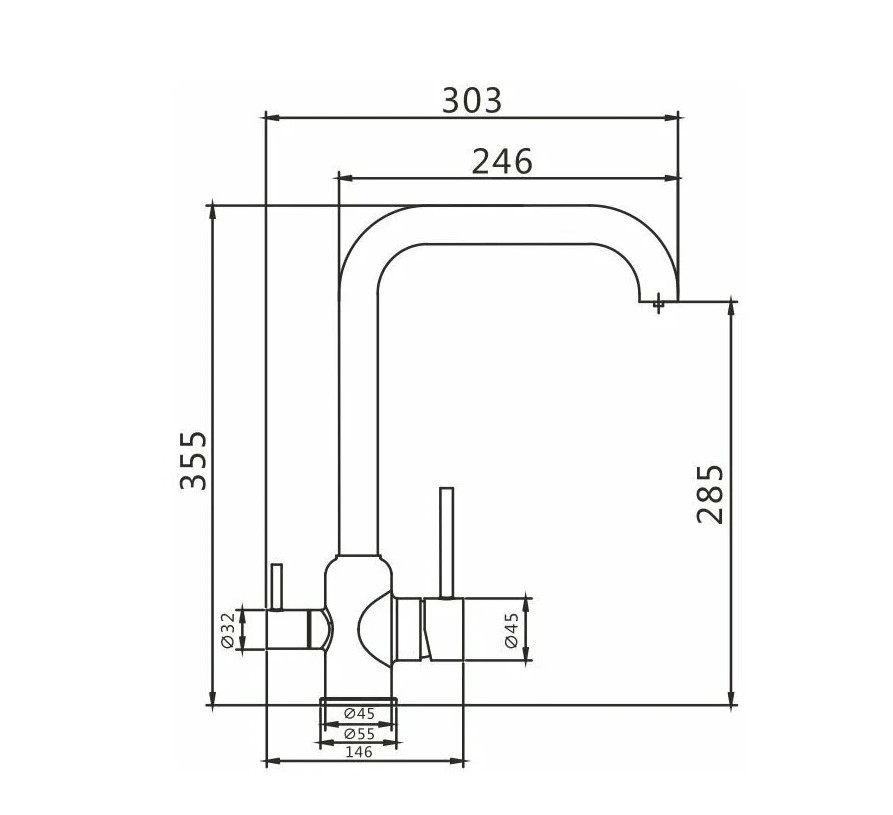 - Длина излива (см): 24.6