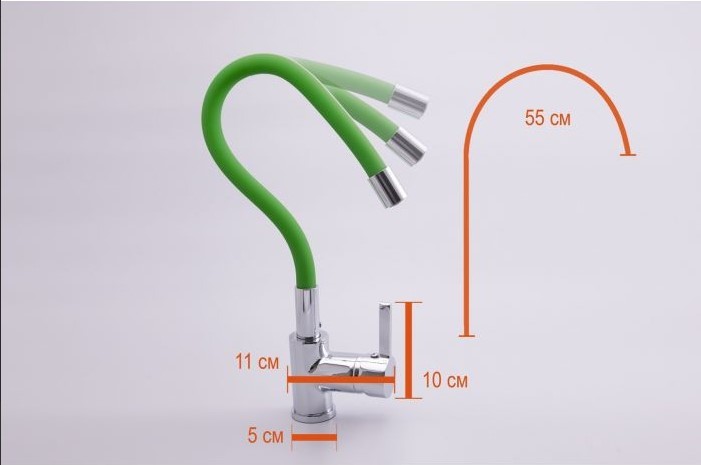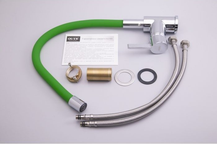 Смеситель для кухни с зелёным гибким изливом Oute T9213B-7