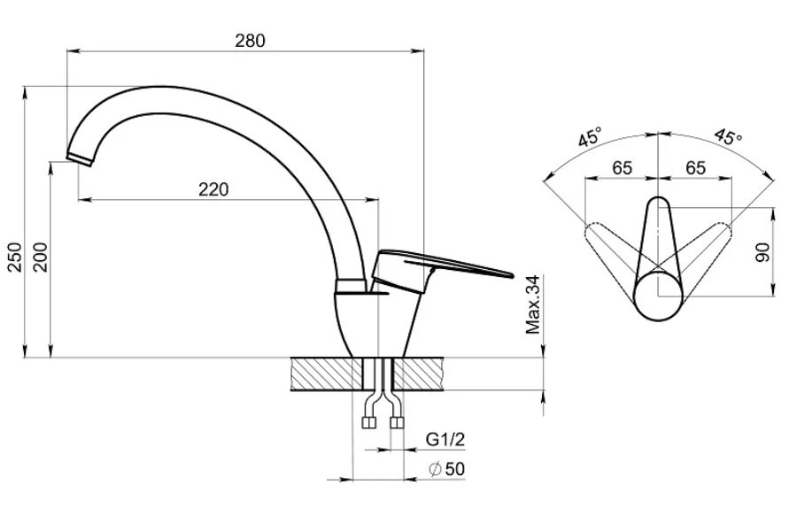 - Высота излива (см): 25