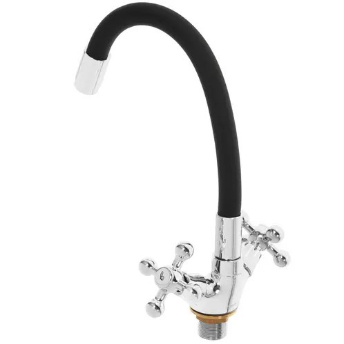 Смеситель для кухни Accoona A9871F имеет вентильную конструкцию и гибкий черный излив из силумина. Цвет: хром/чёрный. Он изготовлен в форме буквы С и может поворачиваться из стороны в сторону для удобства пользователя при решении бытовых задач. Аэратор, встроенный в излив, отвечает за равномерную подачу воды. Оба вентиля смесителя для кухни Accoona A9871F обладают плавным ходом и «слушаются» легкого касания пальцев. Таким образом, кроме симпатичного дизайна, модель может предложить своему обладателю практичность и удобство использования.