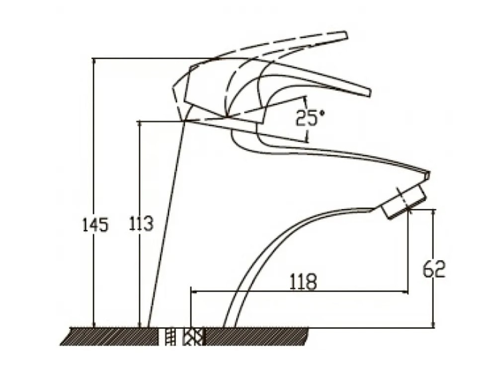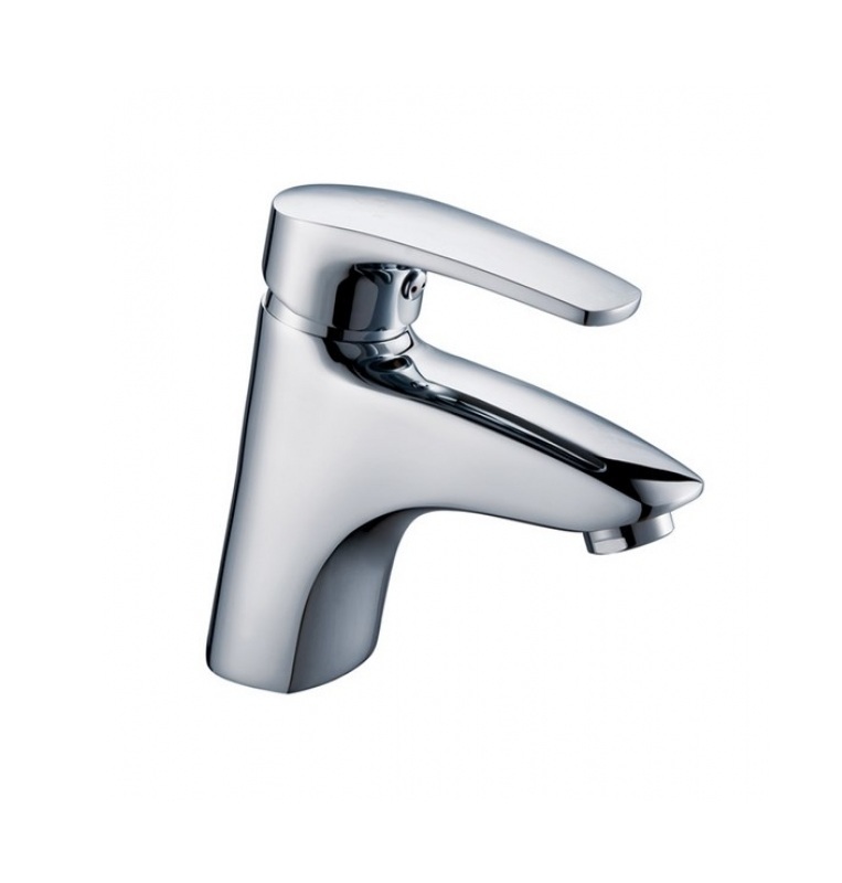 1) Смеситель для раковины с фиксированным изливом. Высота излива: 8 см. Длинна излива: 11 см. Монтаж: На шпильке.